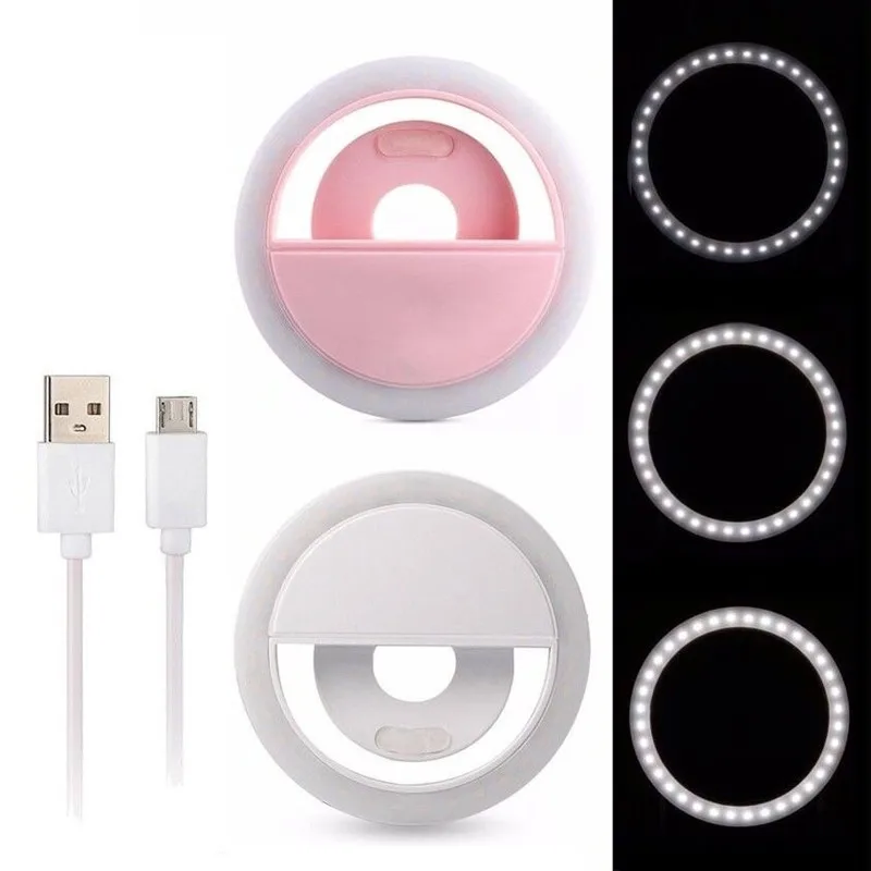 Селфи лампа селфи светодиодное кольцо вспышка для телефона заряжаемое круглое кольцо освещения для iPhone Samsung мобильные линзы портативное светящееся кольцо с зажимом