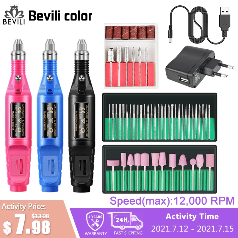 1 машинка для маникюра в форме ручки1 X Руководство пользователя1 X USB-кабель6 бит (5 алмазных бит, 1 наждачный стержень с 6 шлифовальными лентами)Примечание: экономичная упаковка (без шлифовальной головки и без упаковки)