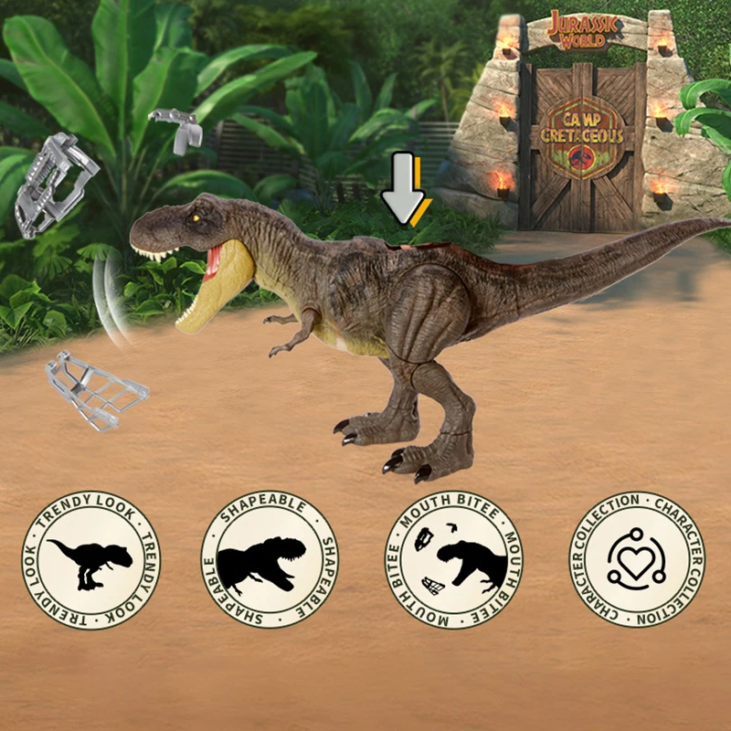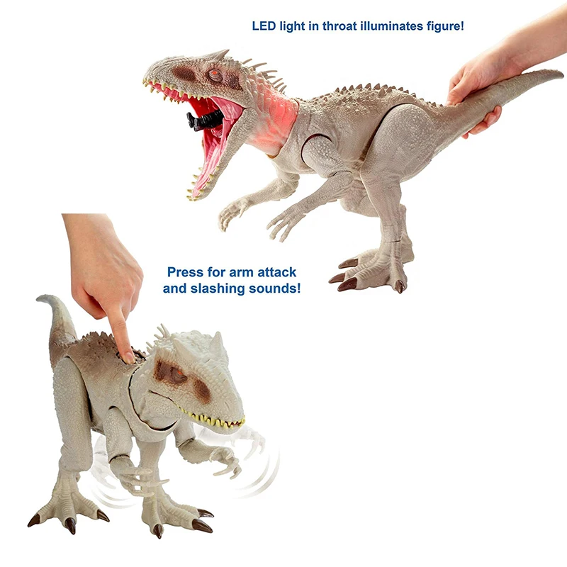 Мир Юрского периода разрушить 'н Devour Indominus Rex Tyrannosaurus динозавр с хомпинг рот разрезая руки огни звуки
