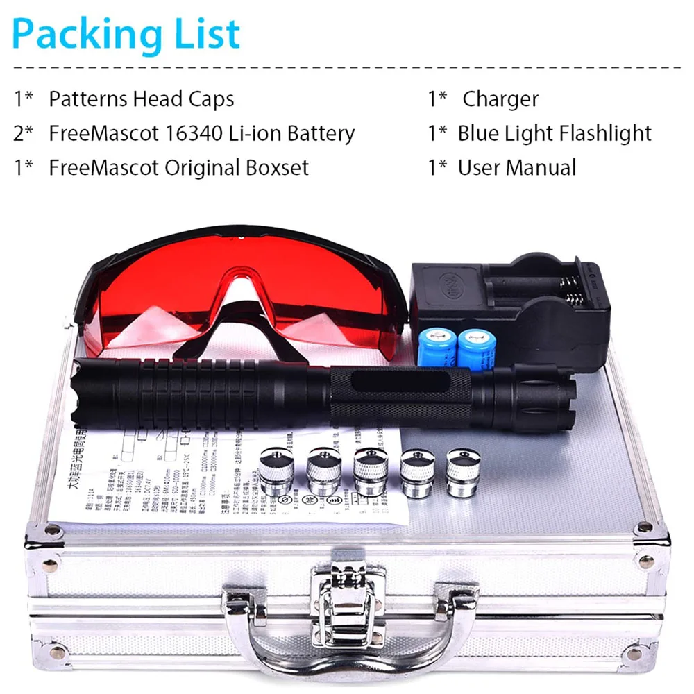 Синяя лазерная указка высокой мощности 2 Вт фонафонарь B009 5000 нм...