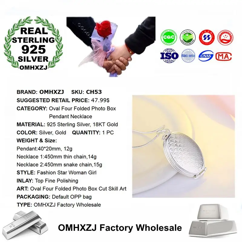 Ожерелье OMHXZJ из серебра 925 пробы с подвеской, овальным цветком и фотокоробкой