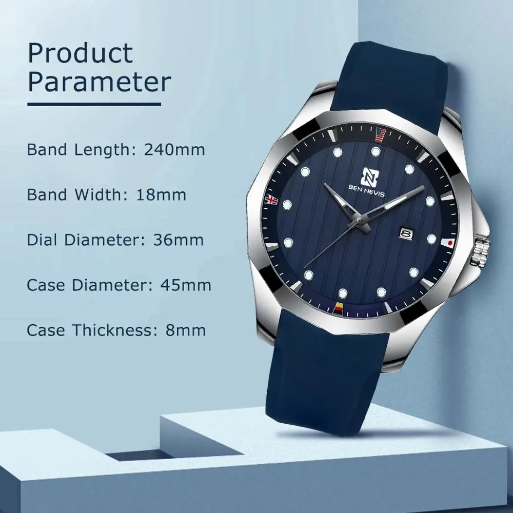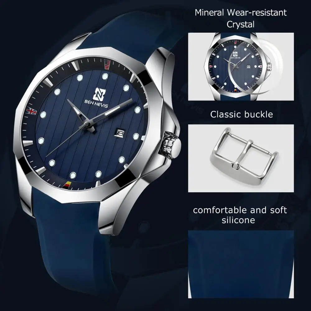 Для мужчин's Часы бен Невис BN3012G силиконовый ремешок для Для мужчин мягкий браслет для часов Дата световой определено Наручные часы Подарочная упаковка Новинка