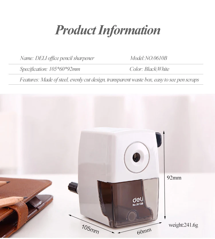 DELI Hand-cranked Pencil Sharpener Manual Pencil Cutter Hand Crank Rotary Knife Pencil Sharpener Stationery Supplies 0610B0668