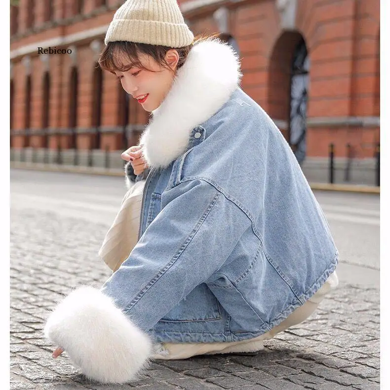 Парка, свободная, ковбойская, очень большая, с меховым воротником, бархатная, с хлопковой подкладкой, куртка с карманами, короткая, с хлопковой подкладкой, одежда, хлопковое пальто для женщин