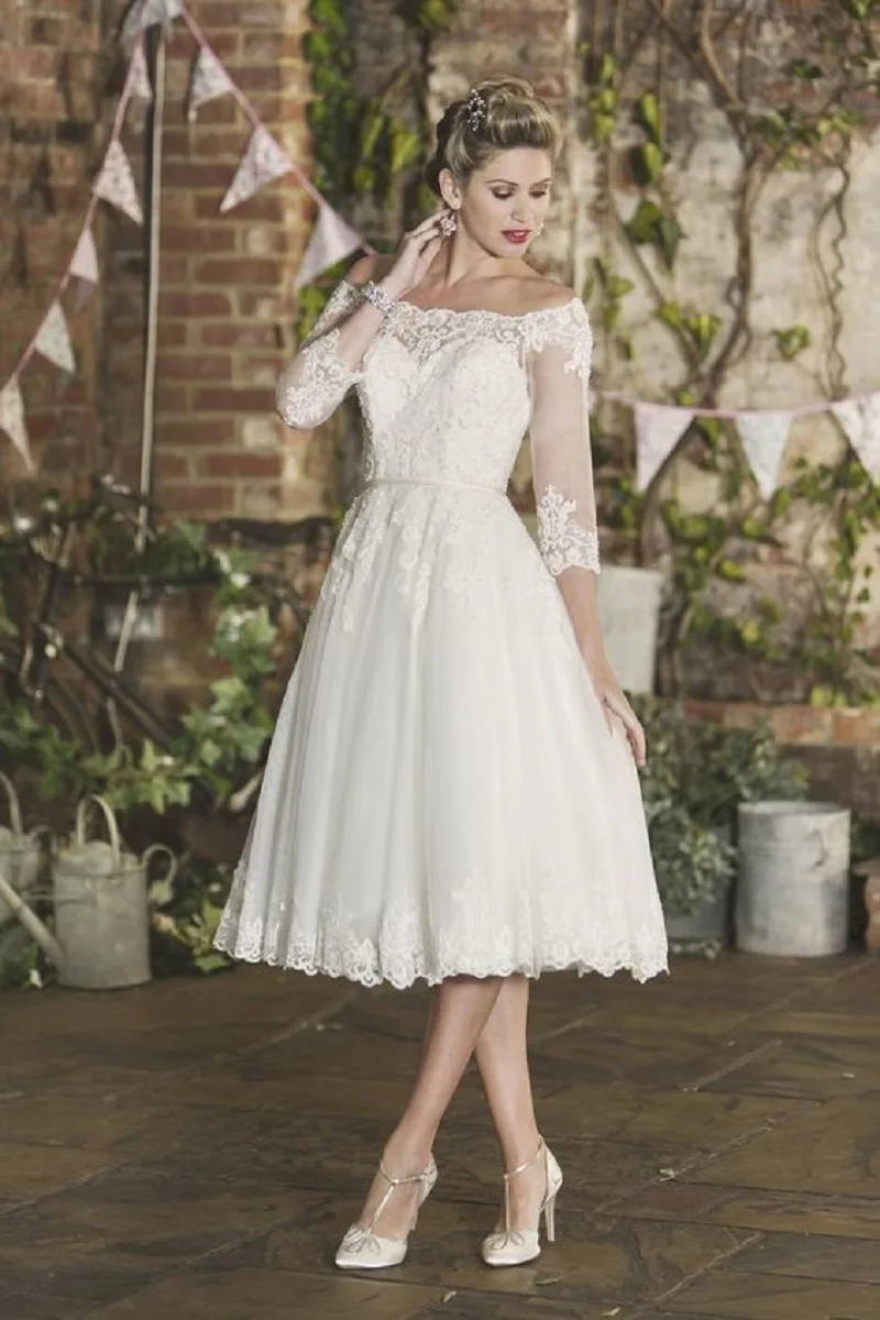 В винтажном стиле до середины икры Свадебные платья коротким рукаво...