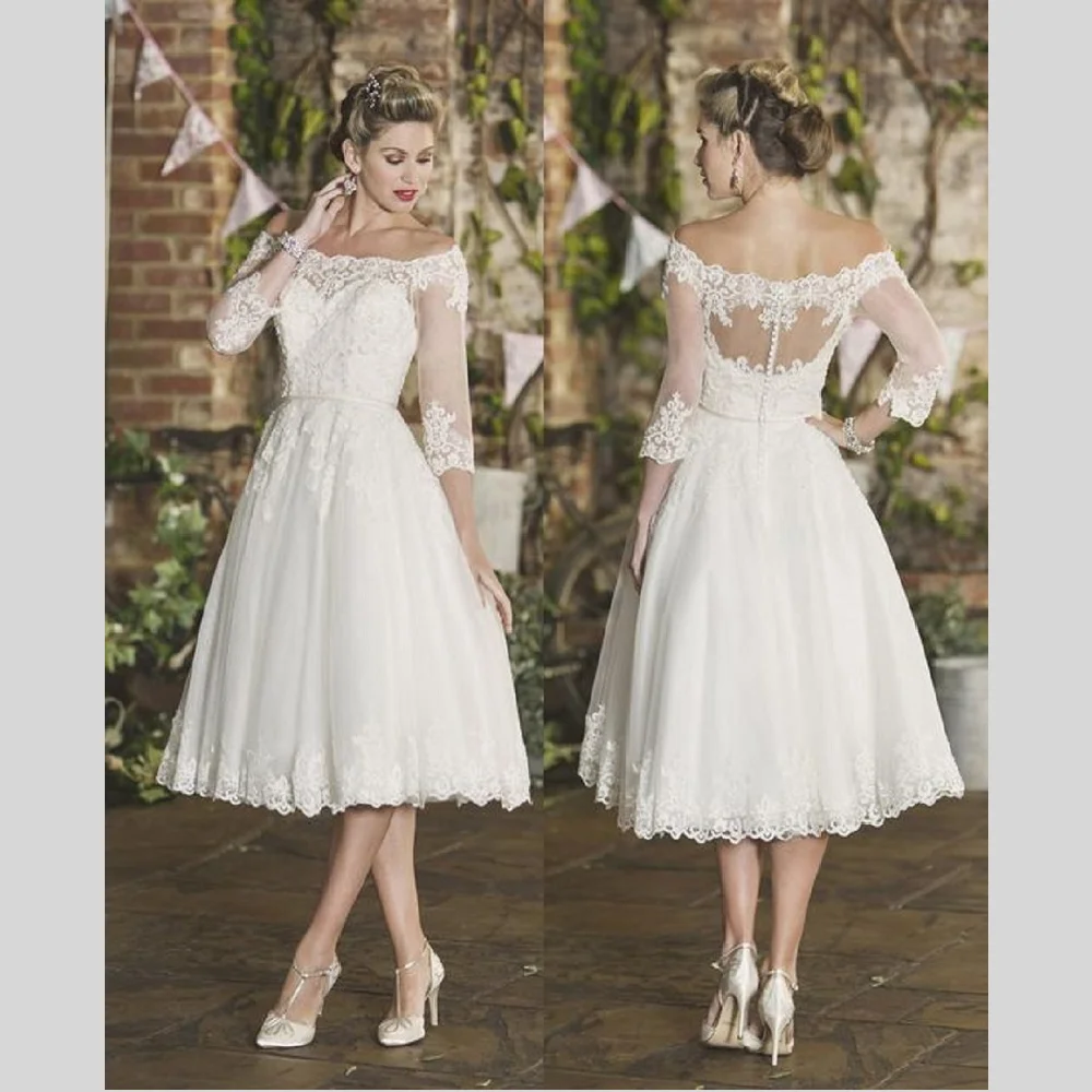 Винтажные Короткие свадебные платья до середины икры 2021, Элегантн...
