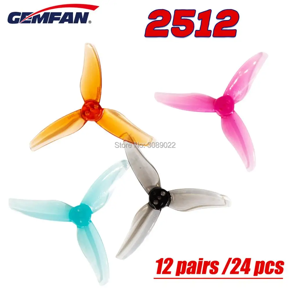 24 шт.оптовая продажа, 12 пар носочков на Gemfan ураган 2512 2 дюймов 3-лопастной пропеллер 3 отверстия 1,5 мм реквизит с видом от первого лица пропеллеры для FPV Racing зубочистка Drone