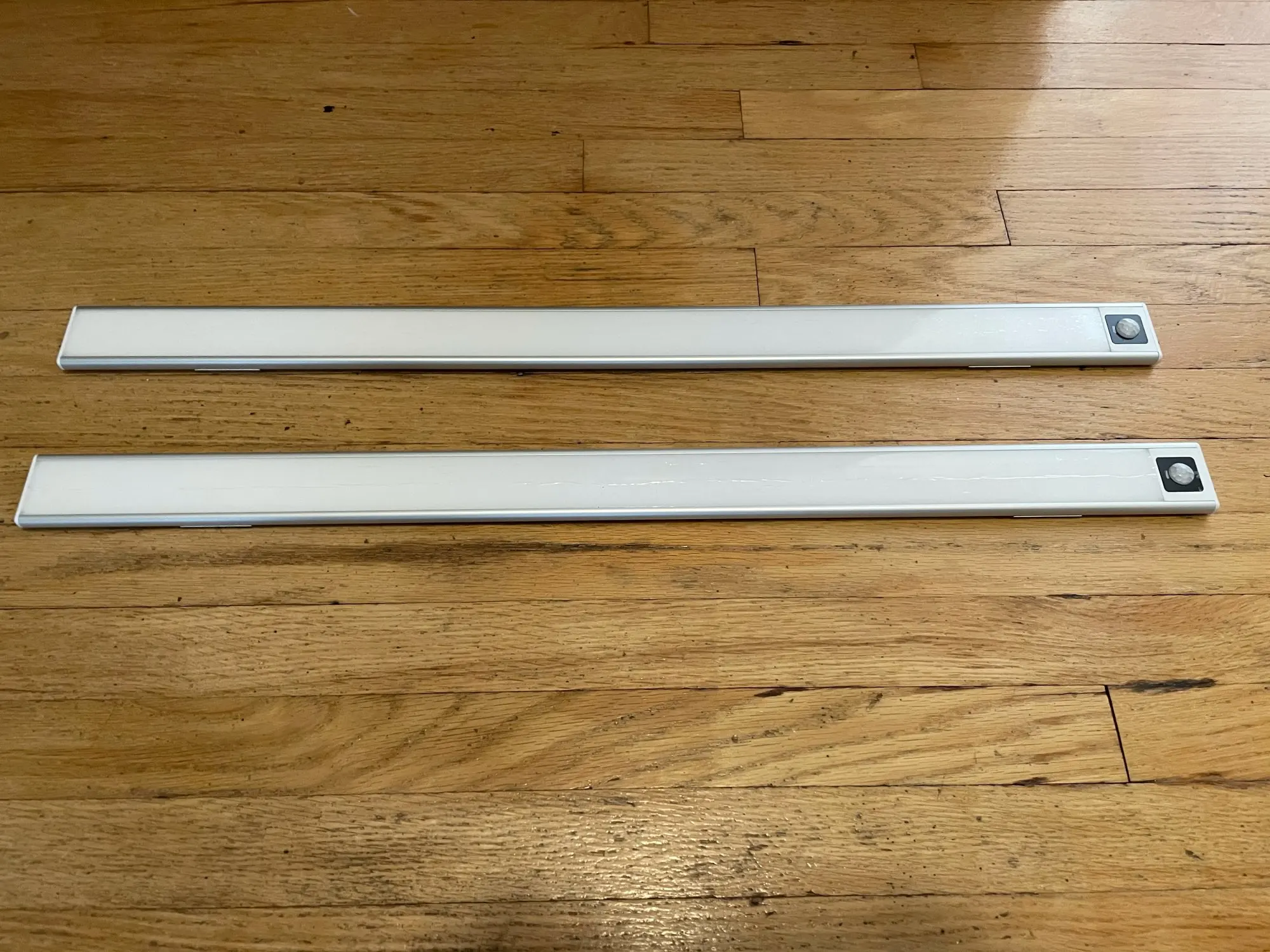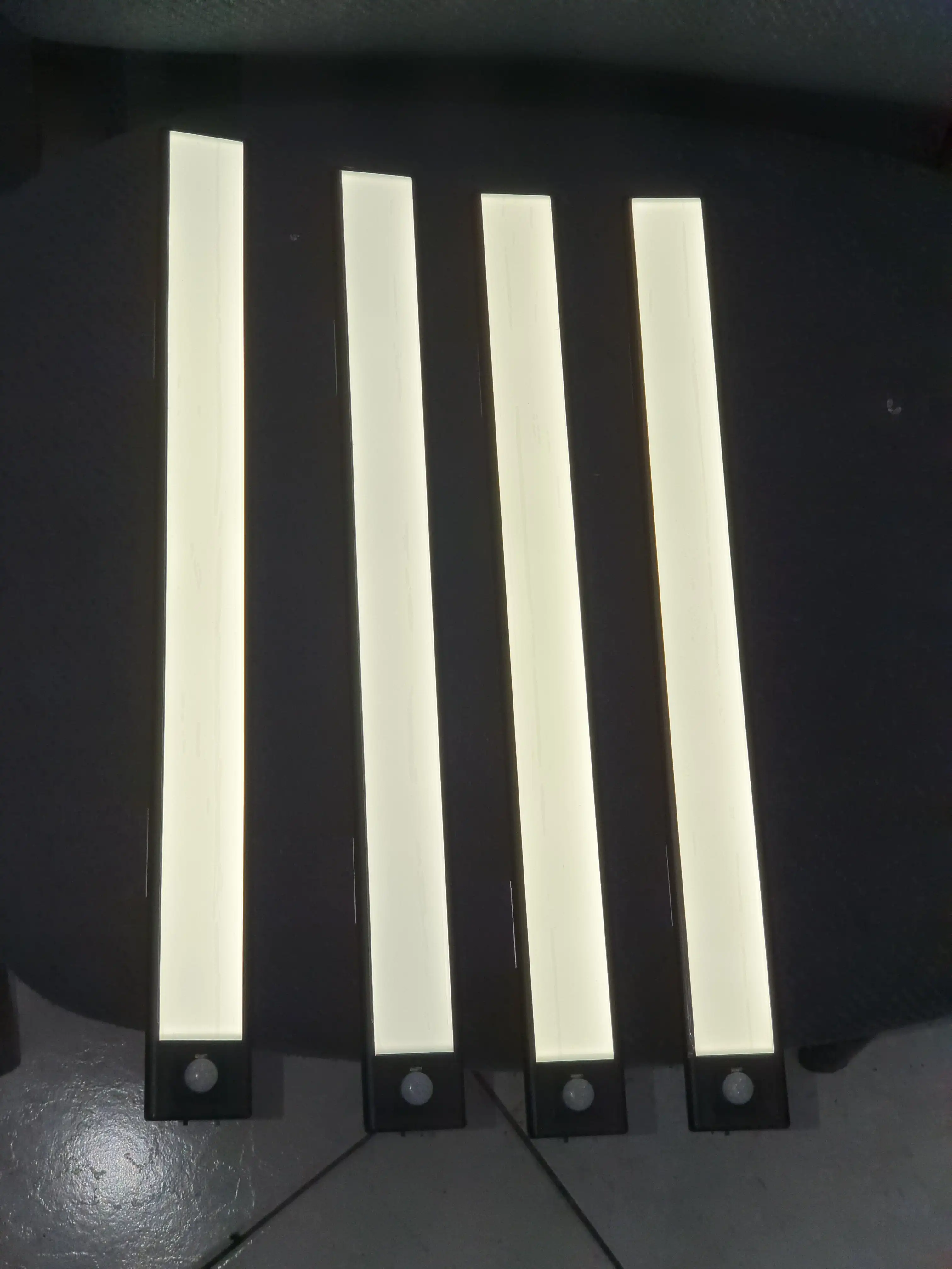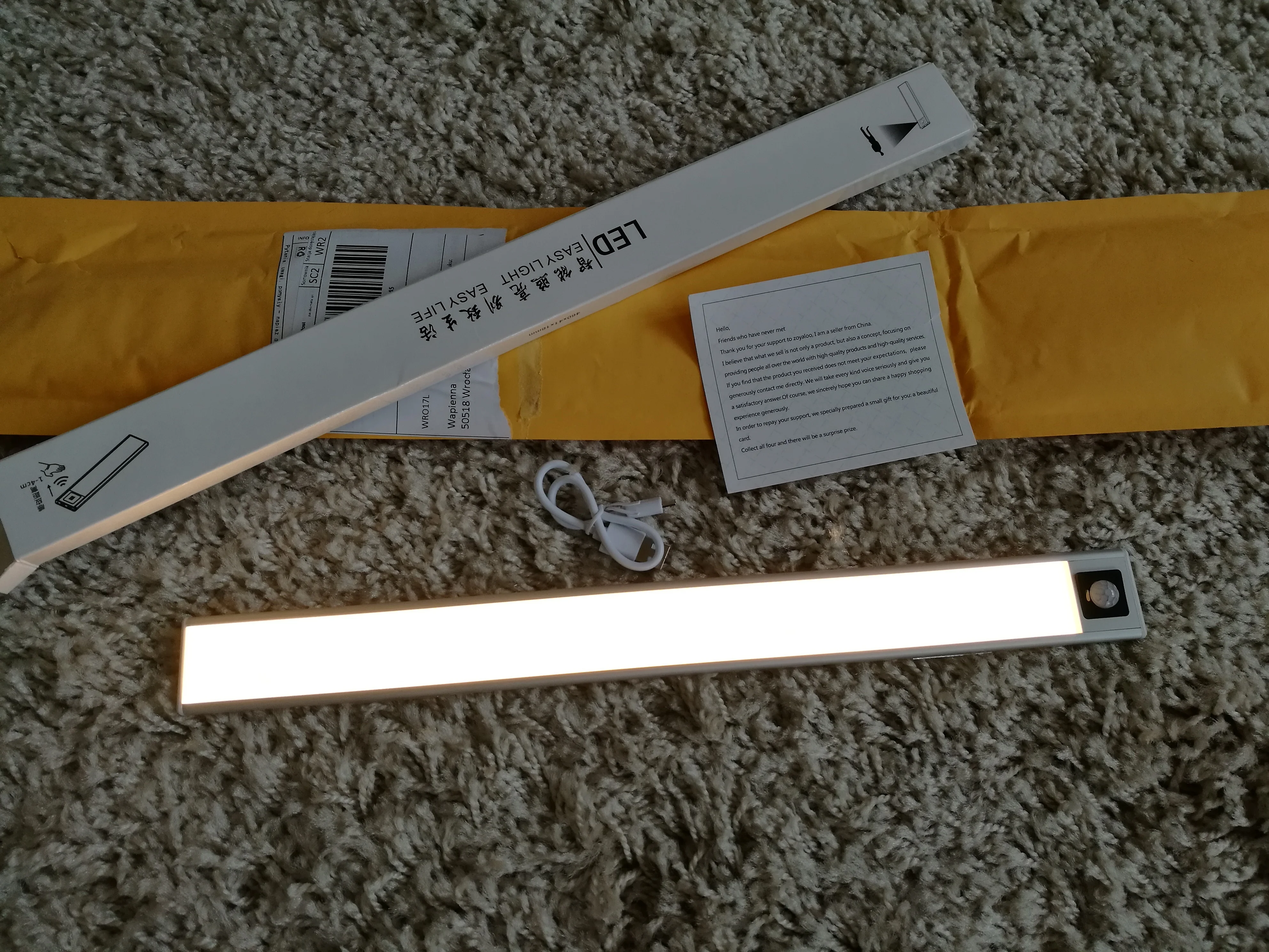 Лампы реально огонь! Выглядят добротно, в комплекте магниты и двусторонний скотч, микроюсб провод для зарядки. Кароче, если будете заказывать 60 см вариант (это ширина стандартного кухонного шкафа) и отправка будет АлиСтандартШиппингом, то не расчитывайте на быстрое получение - скорее всего для них это не габарит, и али переотправит ЕМСом, в итоге - до Екб посылка гугляля 30 дней про ЕМСу Китая и Сингапура и 3 дня по РФ. Но вообще, лампы того стоят. Прям понравилось.