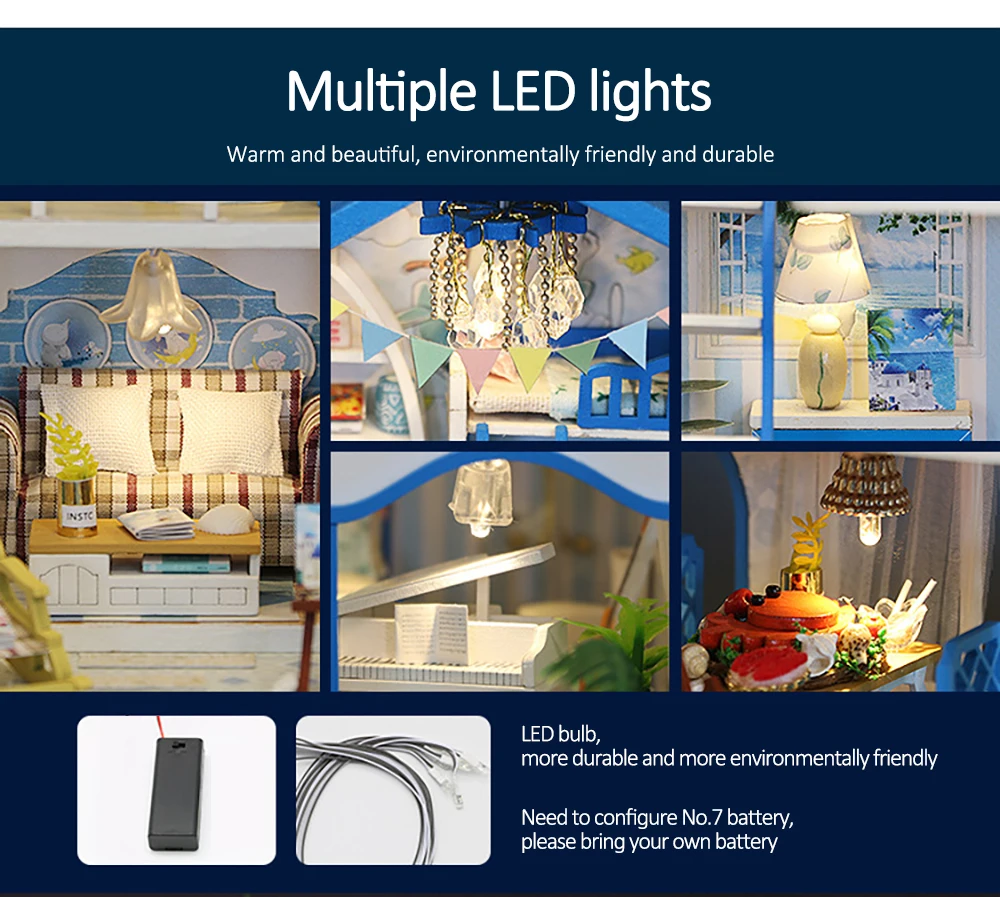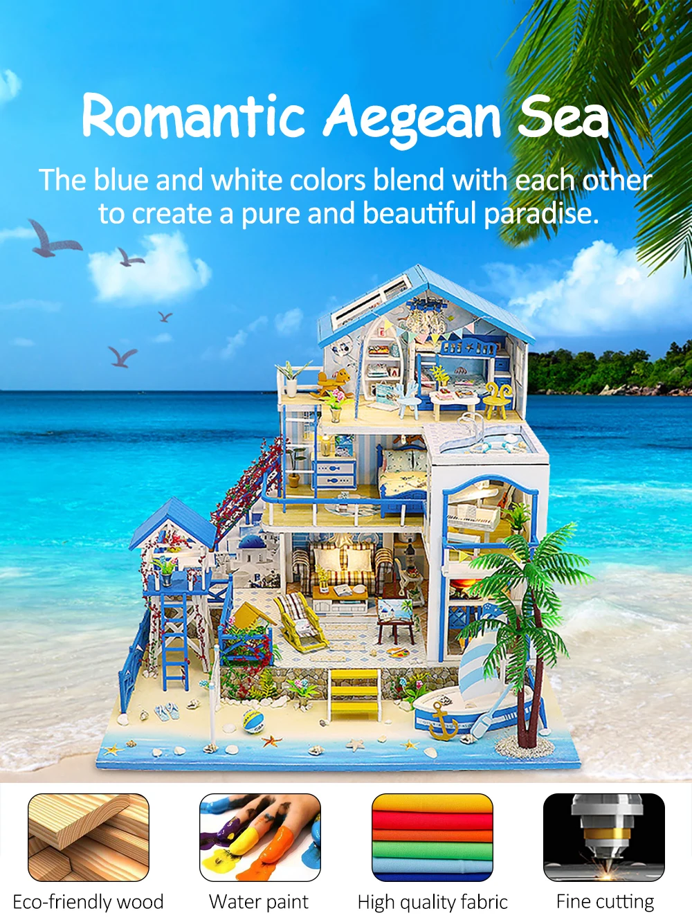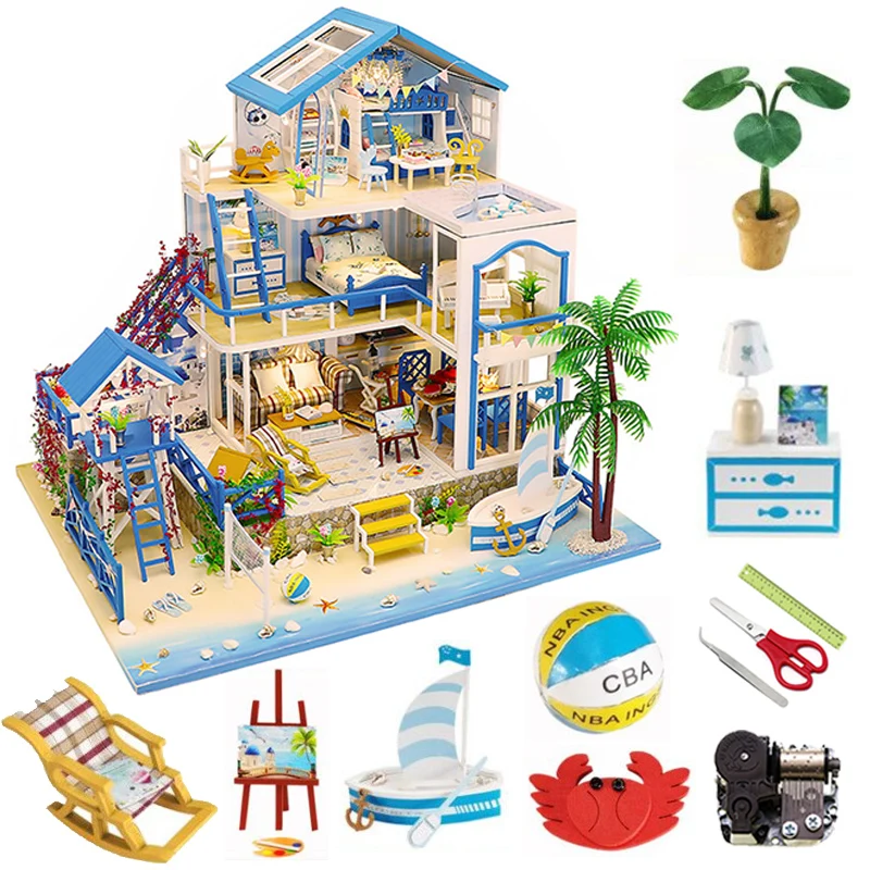 Большой кукольный домик сделай сам, миниатюрные строительные комплекты, морская вилла для Кул, мебель для дома, деревянная Модель для сборки, игрушки Aldult, рождественские подарки, домик