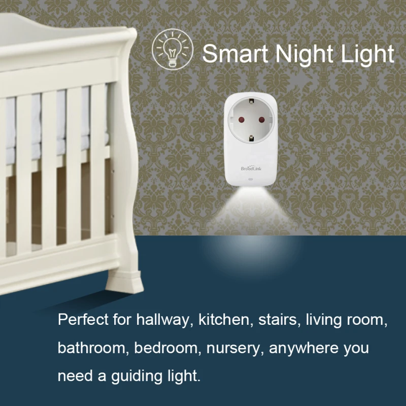 Wi-Fi-розетка BroadLink SP4L, европейская розетка с ночным светильник ением, управление через приложение умный дом, голосовое управление через Alexa, Google Home, автоматизация