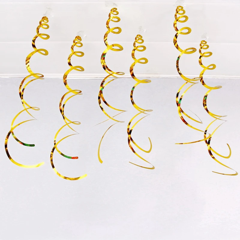 Декоративные ленты для Хэллоуина, металлические потолочные Висячие ленты, сверкающие спиральное украшение для свадьбы, дня рождения, 6 шт.