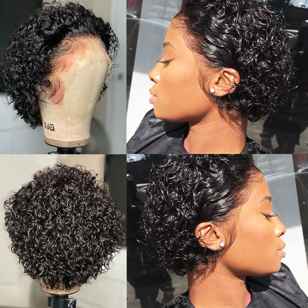 Парик на сетке с сапфировой огранкой 13 х1, Короткие парики из человеческих волос кудрявый парик из натуральных волос без клея