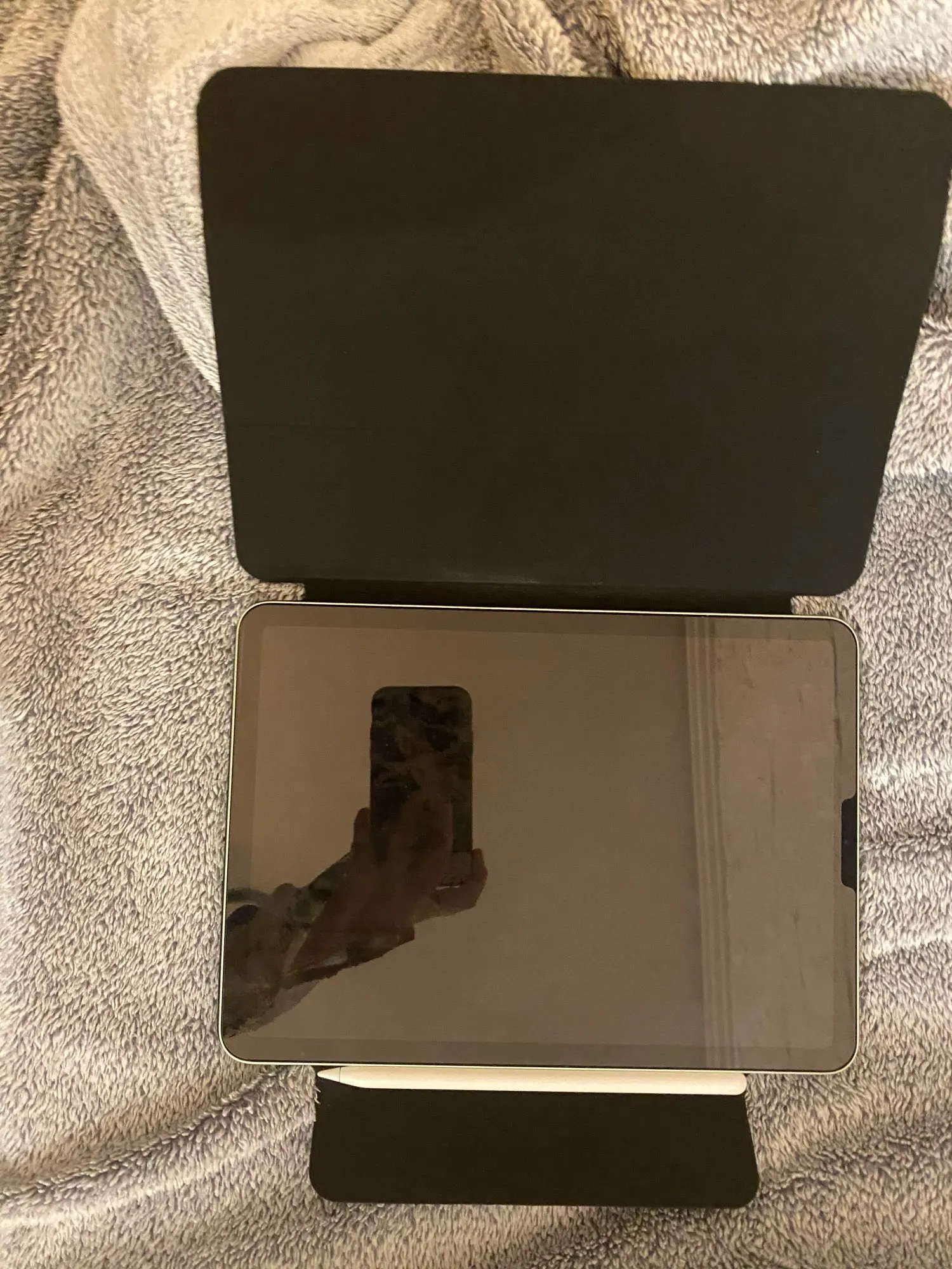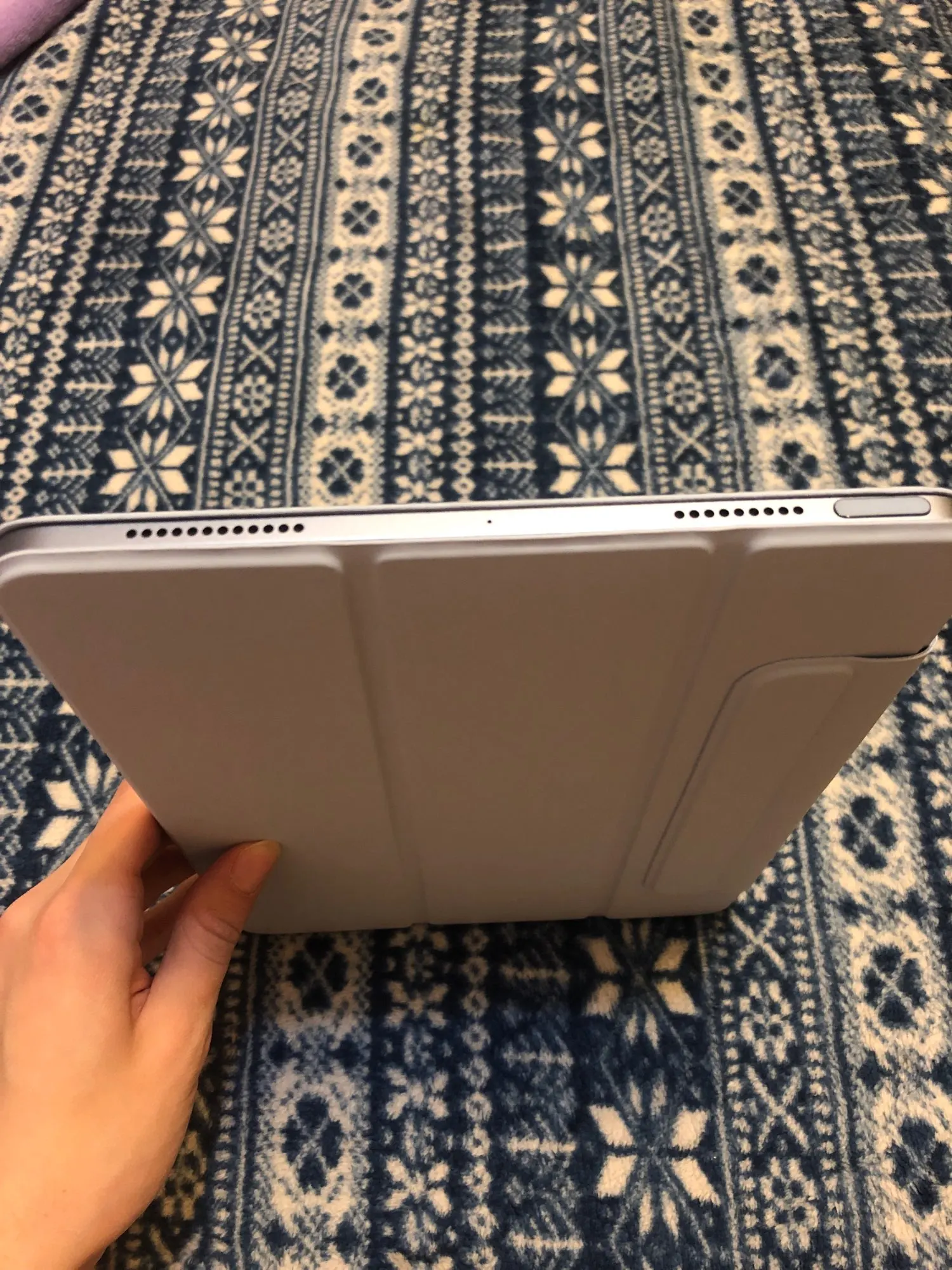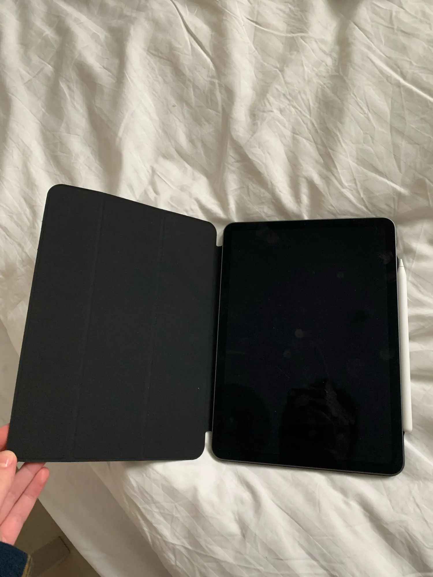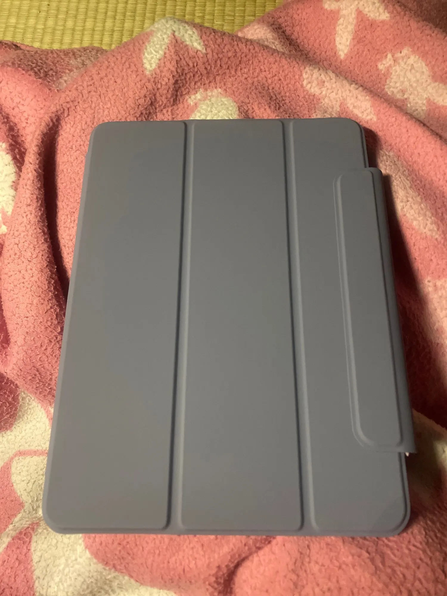 Отличный чехол. Доставка около двух недель, что очень быстро. Приятное на ощупь мягкое покрытие. Цвет очень нежный и красивый. Тонкий, хорошо держится на магнитах, защищает заранее график, как для меня. Карандаш отлично вмещает. Заказ очень доволен, спасибо. Определенно рекомендую.