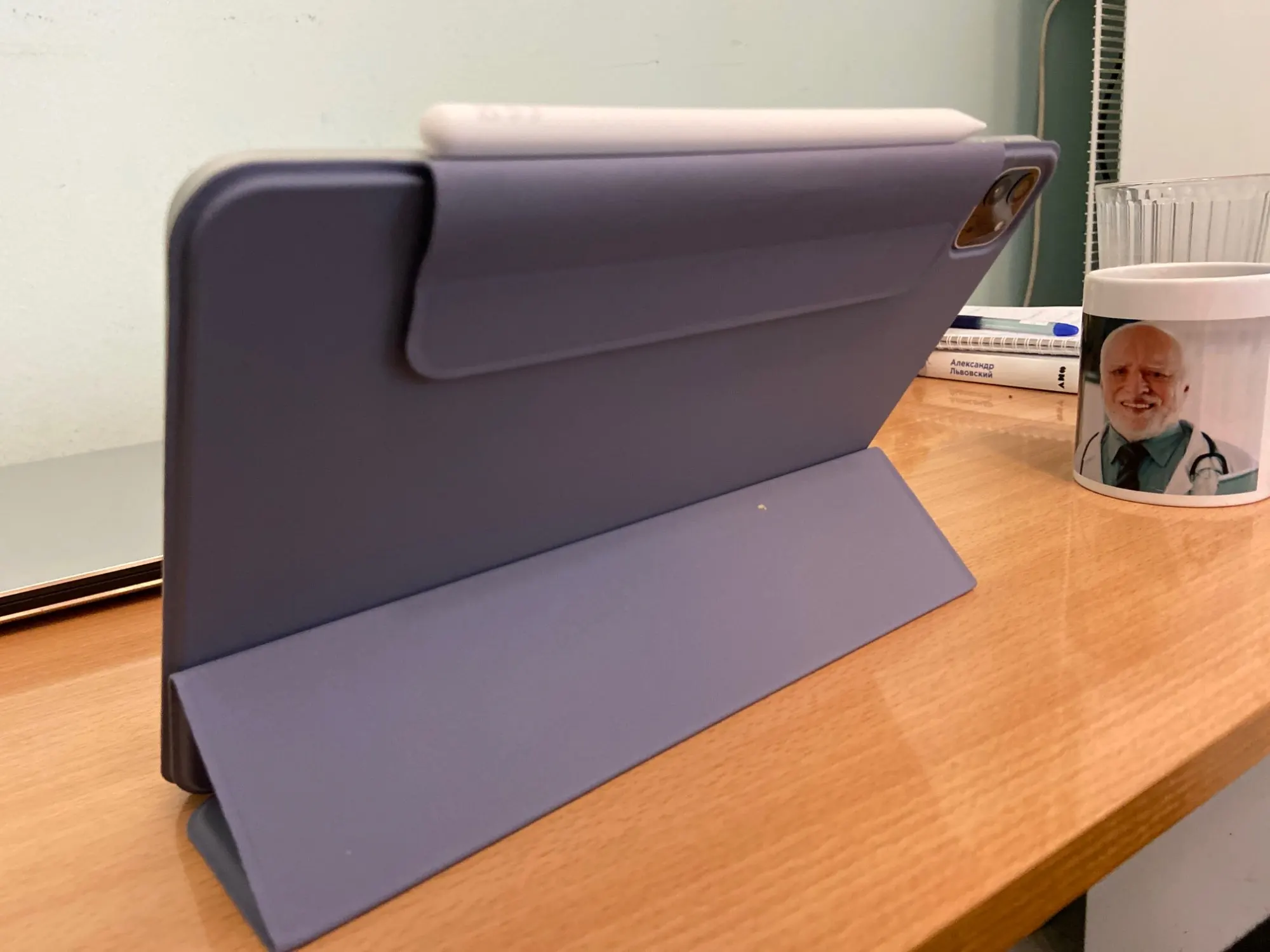 Чехол очень тяжёлый, почти как сам планшет, с собой не потаскаешь, но цвет очень красивый и все свои функции выполняет.