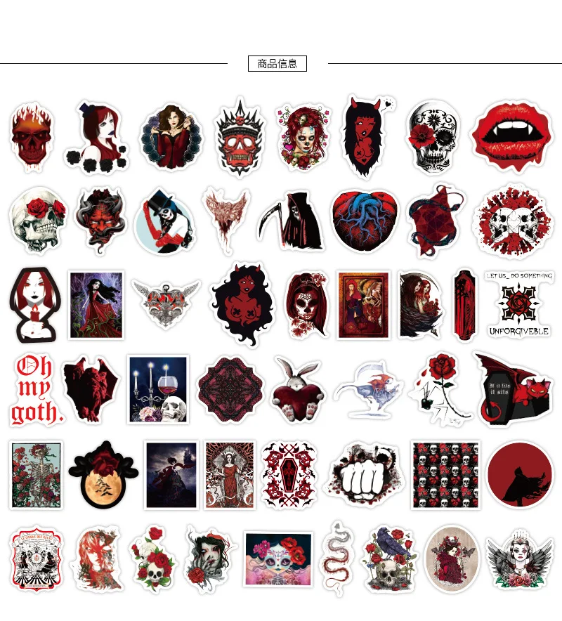 Наклейки для скейтборда, мотоцикла, гитары, в готическом стиле, водонепроницаемые, 50 шт.