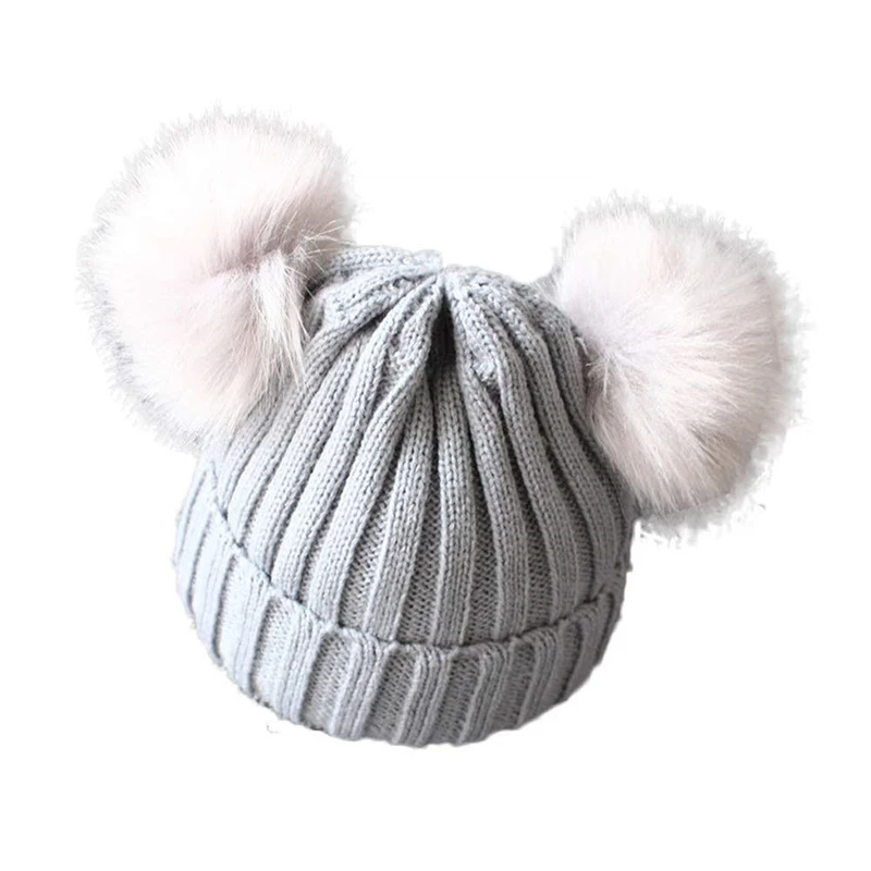 Зимняя теплая вязаная шапка для новорожденных девочек и мальчиков, однотонная теплая Милая Шапка-бини с пушистыми помпонами и шапками, подарок, 2020