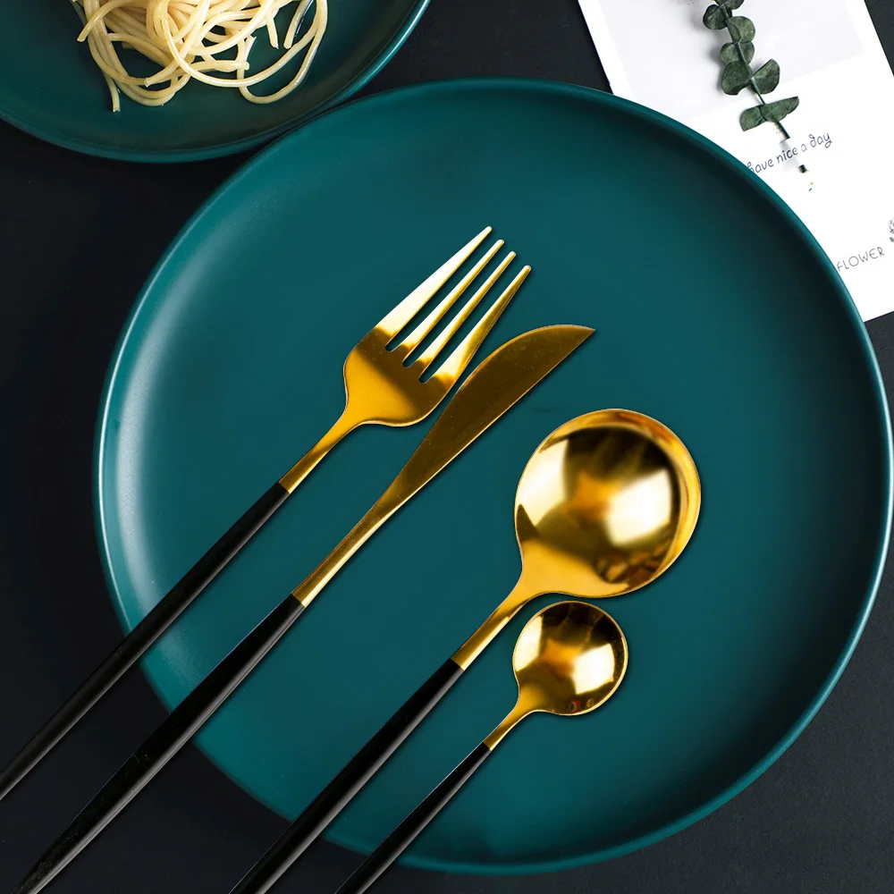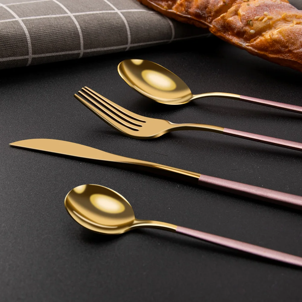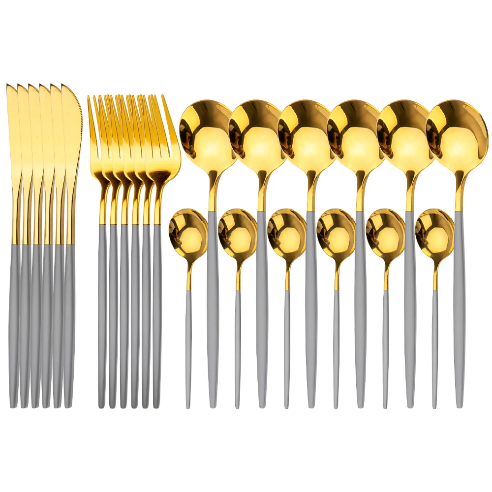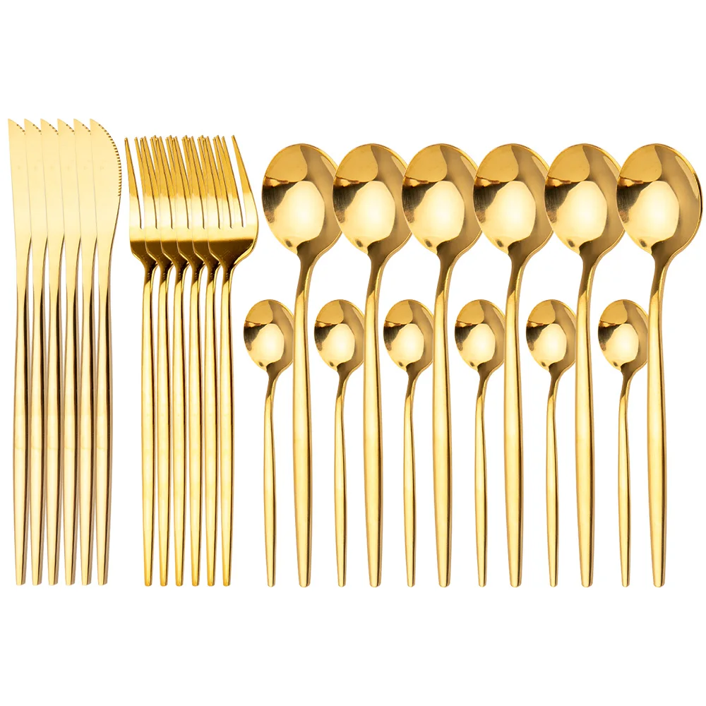 посуда столовые приборы Набор золотых столовых приборов, набор посуды из 24 предметов6 компл, ножи, ложки, впосуда набор столовых приборов из нержавеющей стали, столовая посуда, набор ложек, для кухни наборы посуды