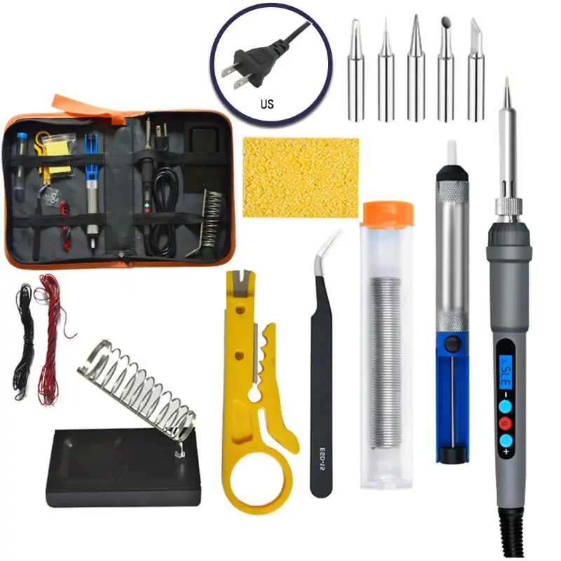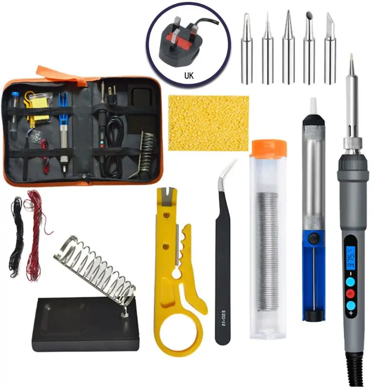 Электрический паяльник с регулируемой температурой и цифровым дисплеем, 60 Вт, сварочный комплект