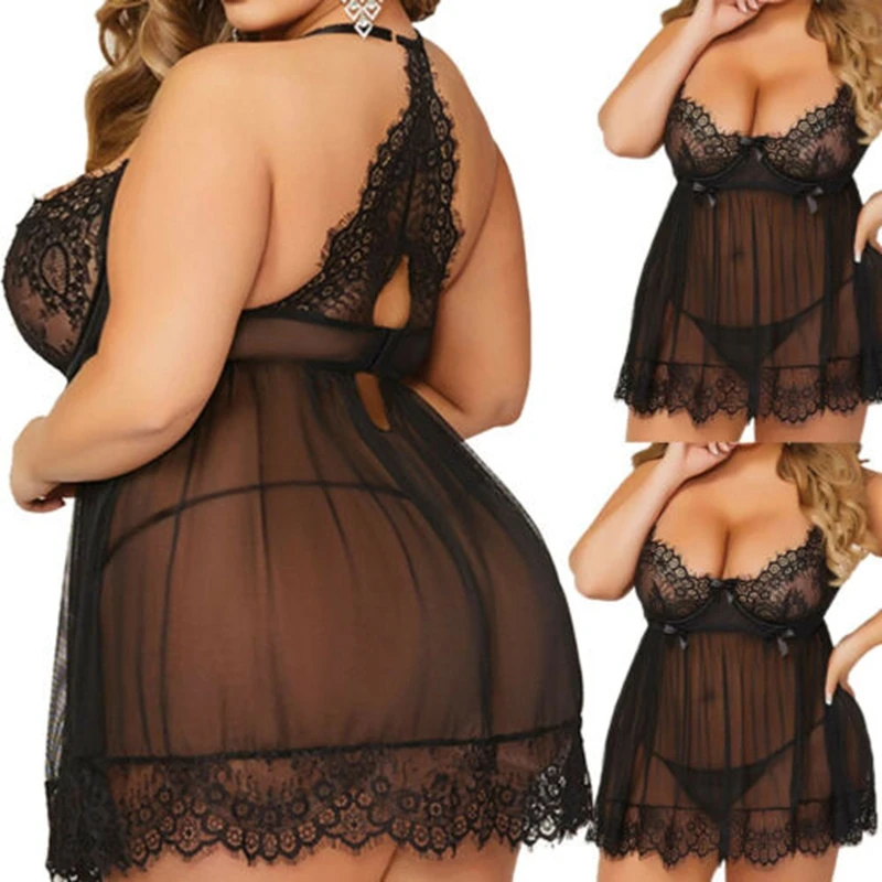 Женское нижнее белье размера плюс, сексуальное кружевное платье с ц...