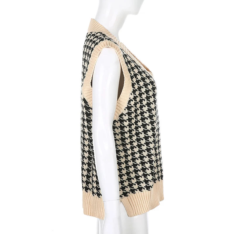 Винтажный свитер HEYounGIRL в клетку с V-образным вырезом, жилет, повседневные Элегантные Джемперы без рукавов, пуловер, Осенний вязаный Топ, зима, уличная мода