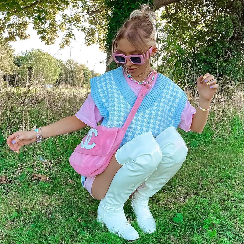 Вязаный свитер-безрукавка оверсайз ALLUKASA в стиле гусиная лапка, ...