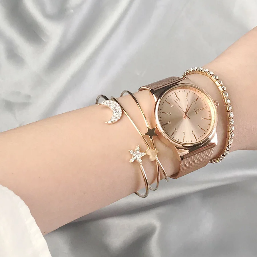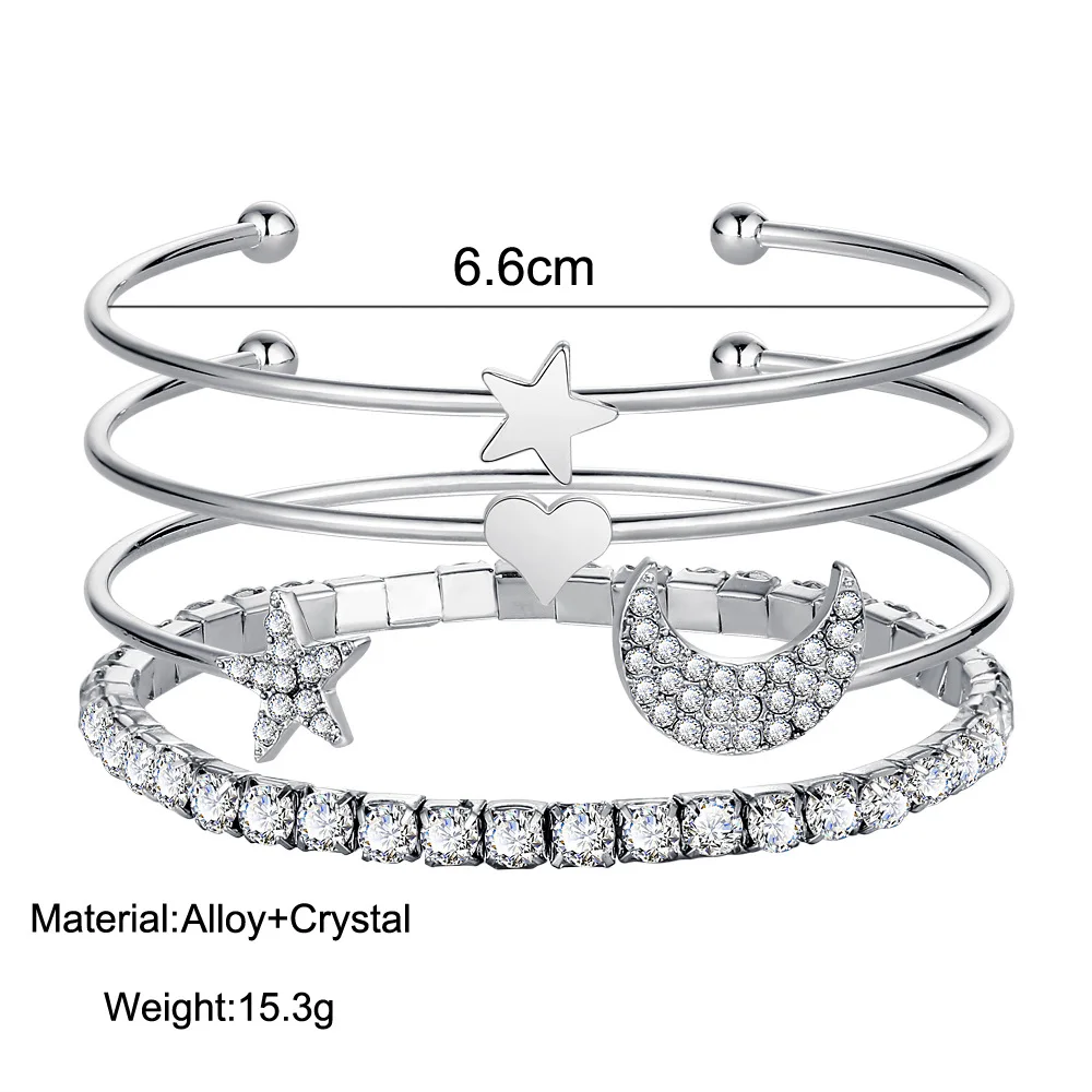 Комплект браслетов из 4 предметов для женщин, модные ювелирные украшения из цепочек в виде когтей, звезд, Луны, стразы, в европейском и американском стиле