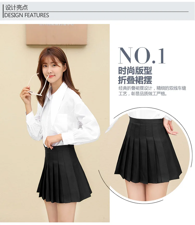 Черная мини-юбка плиссированная юбка в колледжском стиле Kawaii, Же...