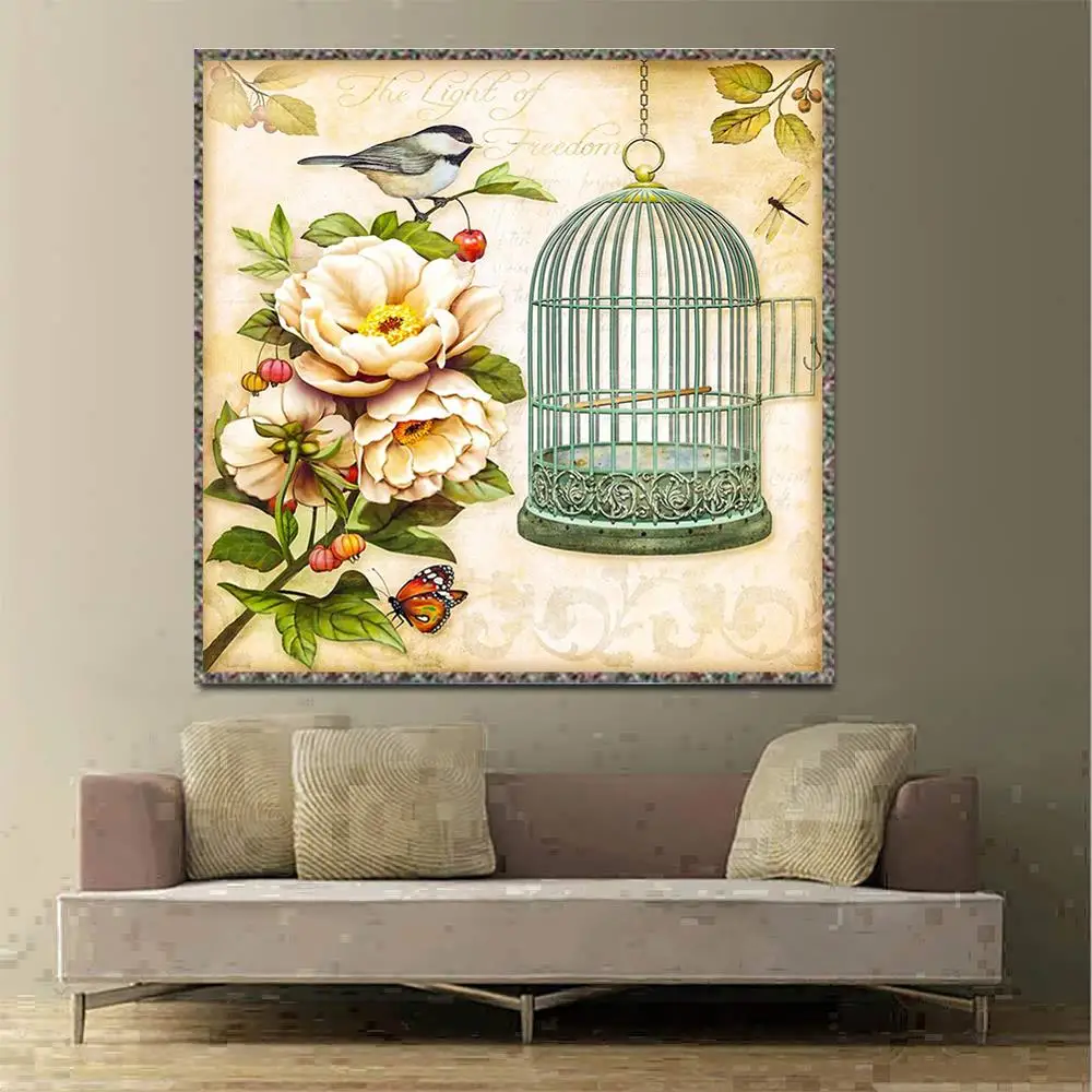 Алмазная картина 5D "сделай сам", клетка с цветами и птицами, вышивка крестиком, наборы для рукоделия, домашний декор, рождественский подарок