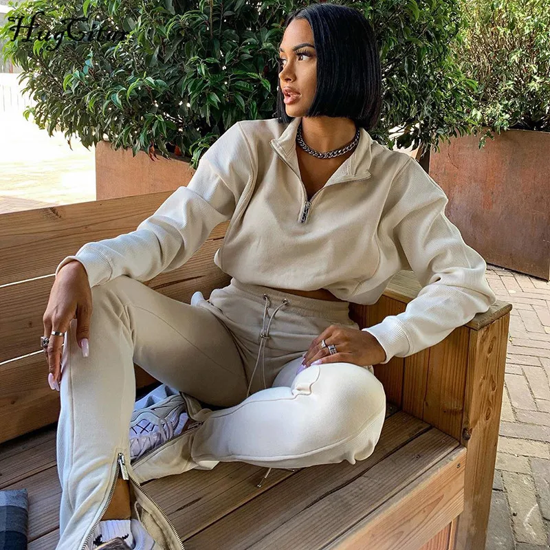 Женский спортивный костюм Hugcitar, 2 предмета, осенне-зимний спортивный костюм с длинными рукавами, с узором в виде пачки и кропсов, Осень-зима 2020