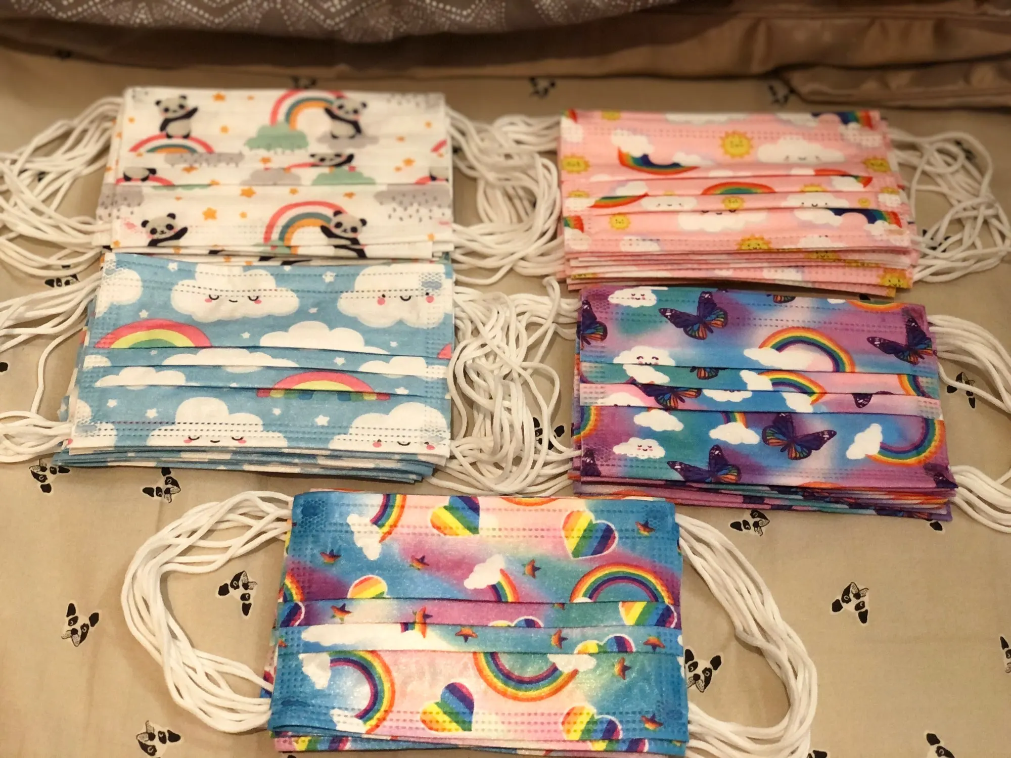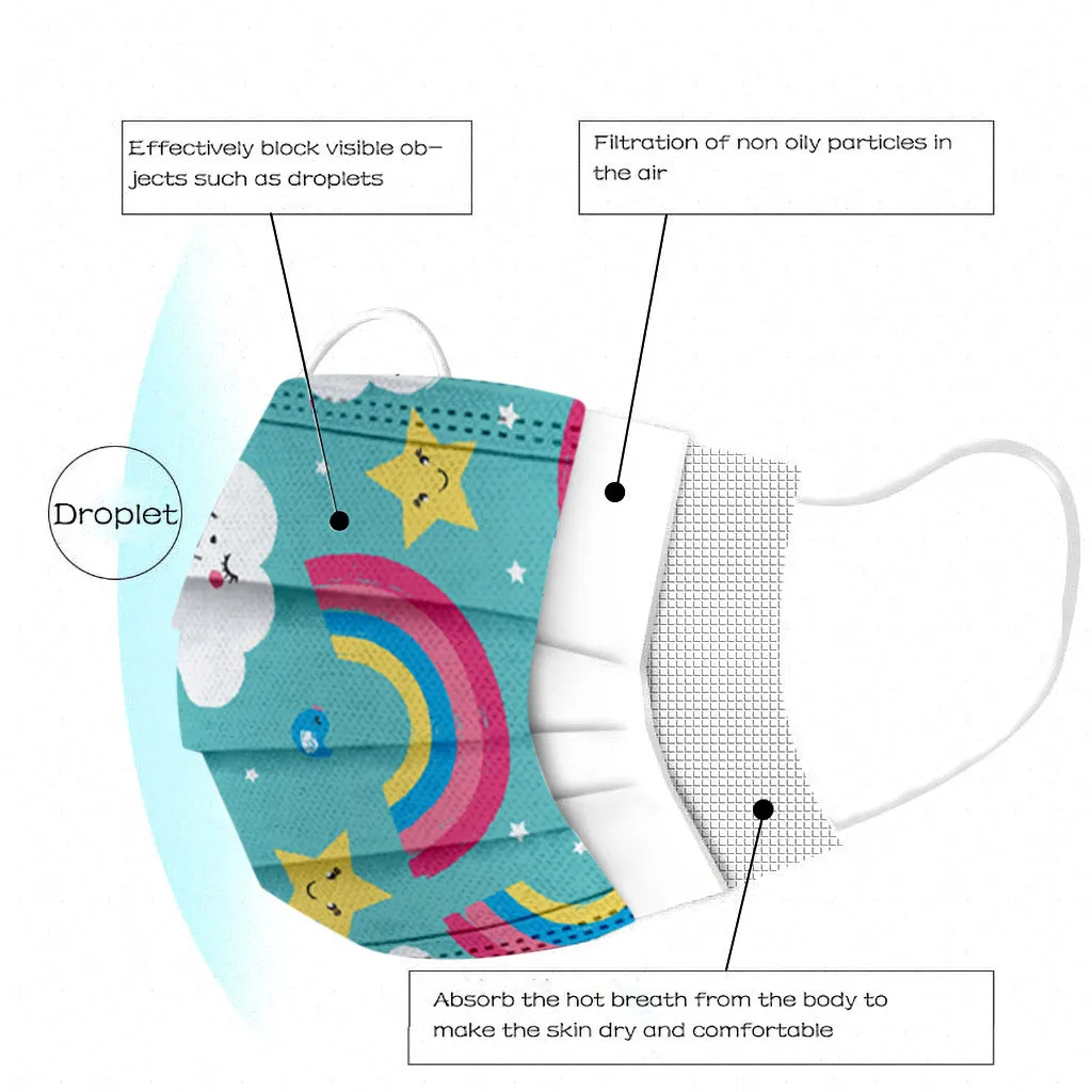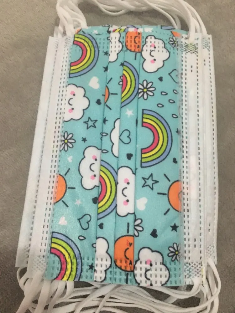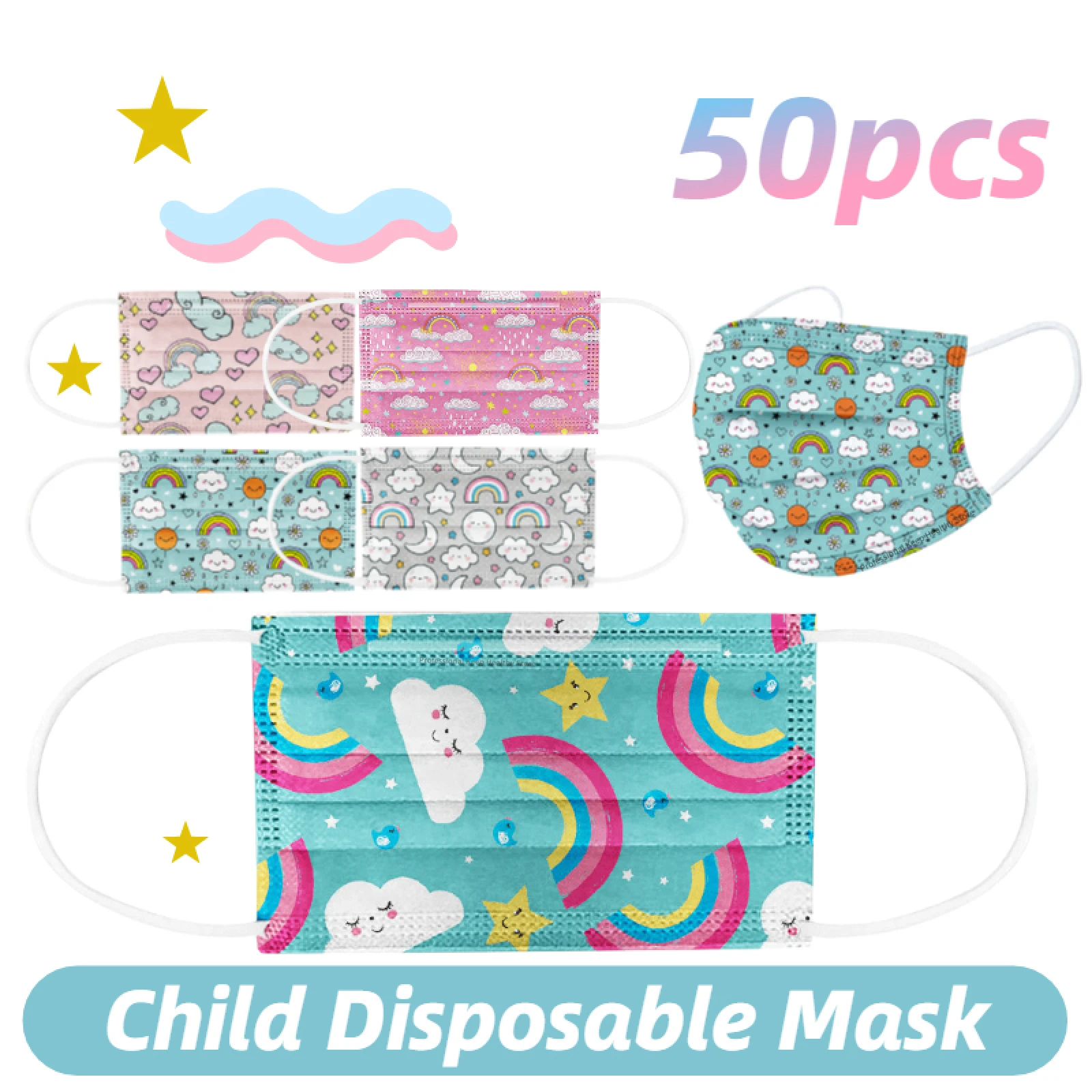Маска детская одноразовая с радужным принтом, 3 слоя, 50 шт.
