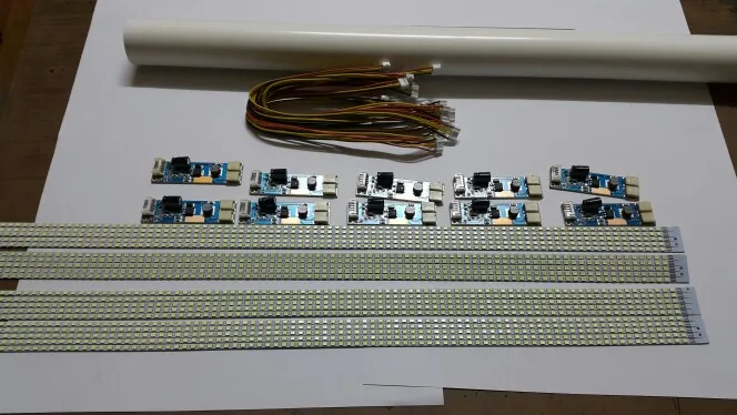 20 линеек (все рабочие) светят белым без желтизны и синевы. То что надо. 10 драйверов. Без повреждений. Все проверены. Отлично. 10 Кабелей. Всё пришло в пластиковой трубе. И достаточно оперативно пришло. Можно брать.