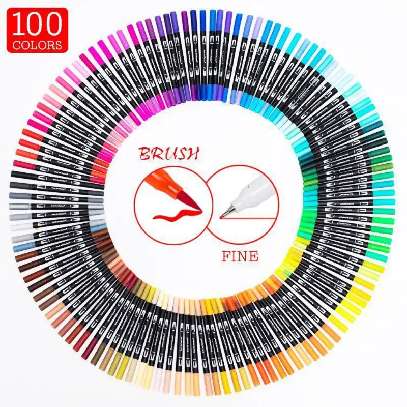 100 Цвета Краски маркер кисть Двойные наконечники Классическая приковывающая взгляд на водной основе для рисования, файнлайнер, каллиграфия рисунок Арт Набор письменных принадлежностей