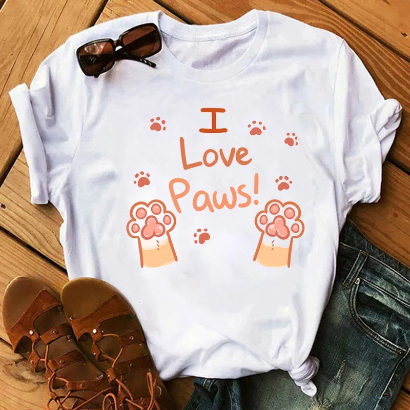 Футболка женская с принтом лапы собаки и сердца, смешная мультяшная футболка, модный эстетический Топ для отдыха, лето 2020