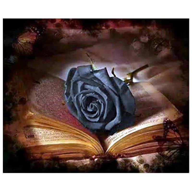 5D алмазная живопись сделай сам, черная Роза и книжка, мозаика, пазл, вышивка крестиком, полностью квадратная, круглая, фантастическая Алмазная вышивка