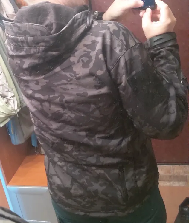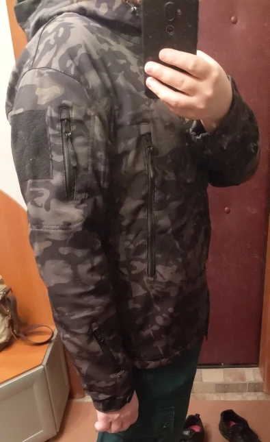 Материал очень хороший, карманов куча разных маленьких и не понятно зачем они вообще нужны. На руковах липучки зачем то, видимо что бы в лесу все приклеивалось. А в целом доволен взял чуть посврбодней что бы можно было свитер пододеть