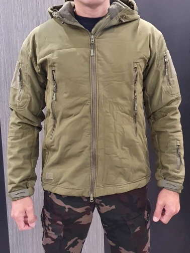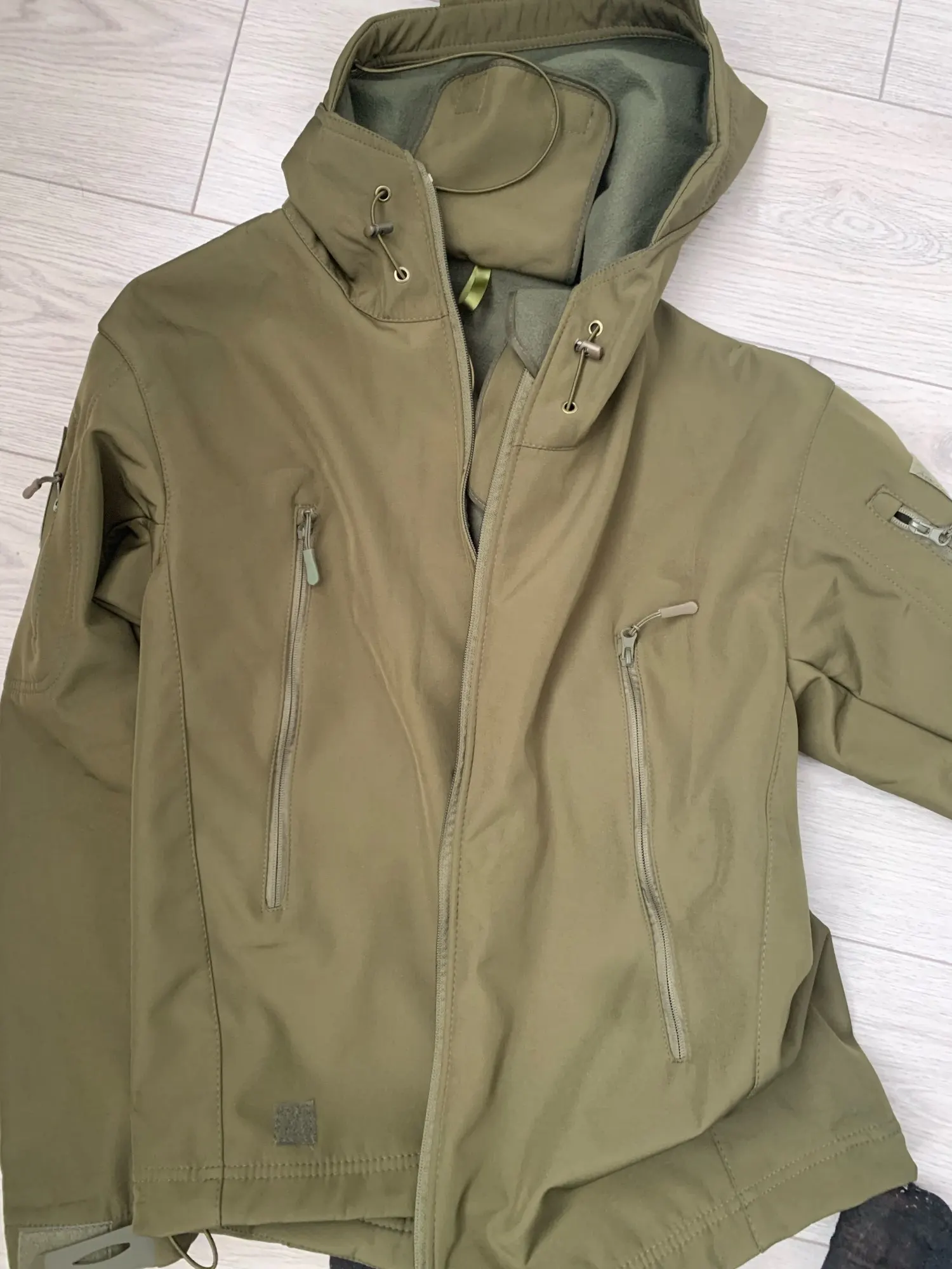Мужская тактическая ветрозащитная водонепроницаемая куртка в стиле милитари из кожи акулы с капюшоном