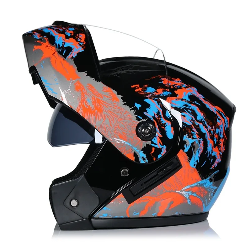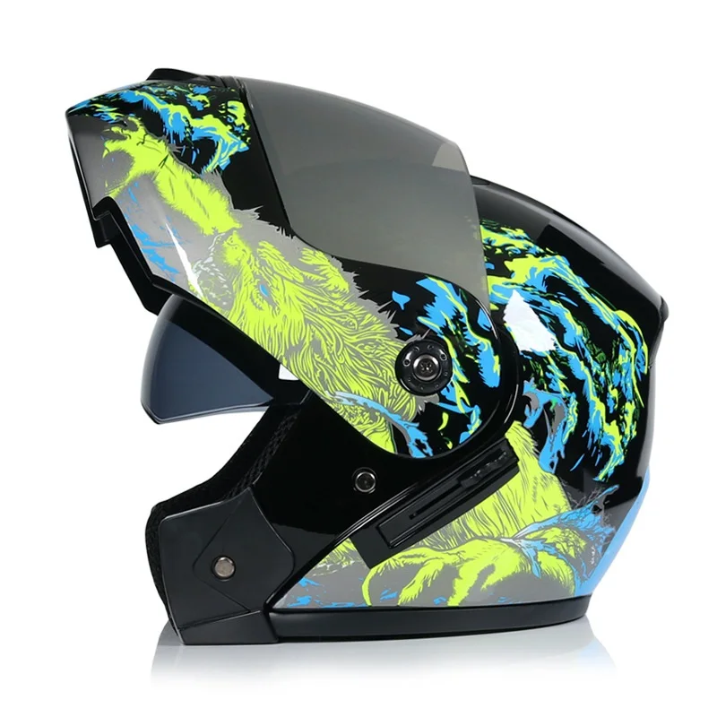 Мотоциклетный откидной шлем, гоночный модульный шлем в горошек, с двойными линзами, на все лицо, каска для мотокросса
