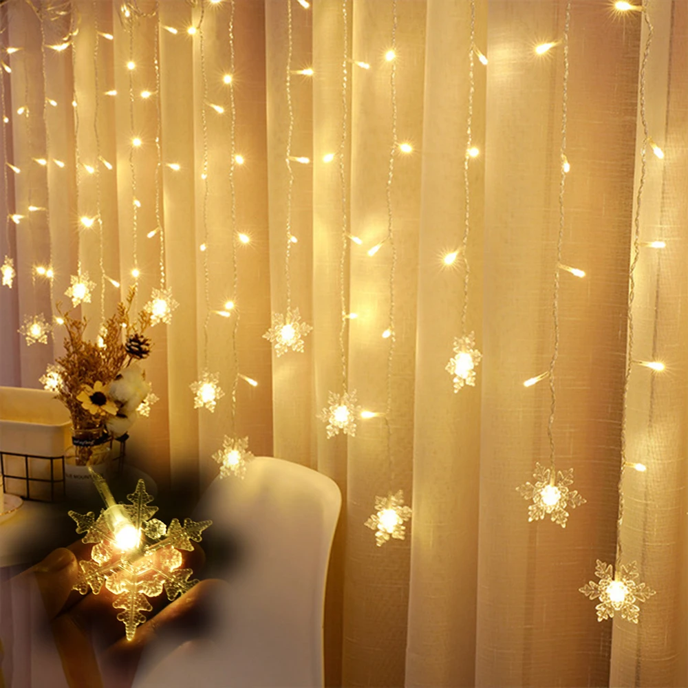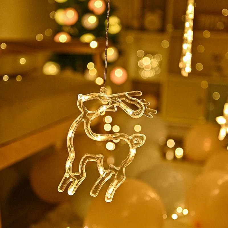 Рождественсветильник светодиодная гирлянда-занавес, 3,2 м, в виде звезд s, олень с колокольчиками, гирлянда на елку, гирлянда на Новый год 2022, вечеринку, свадьбу, праздник, Декор