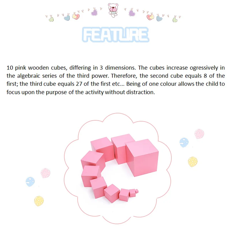 Монтессори Sensorial материал розовая башня Монтессори дошкольного образования обучающие игрушки для детей Juguetes Brinquedos