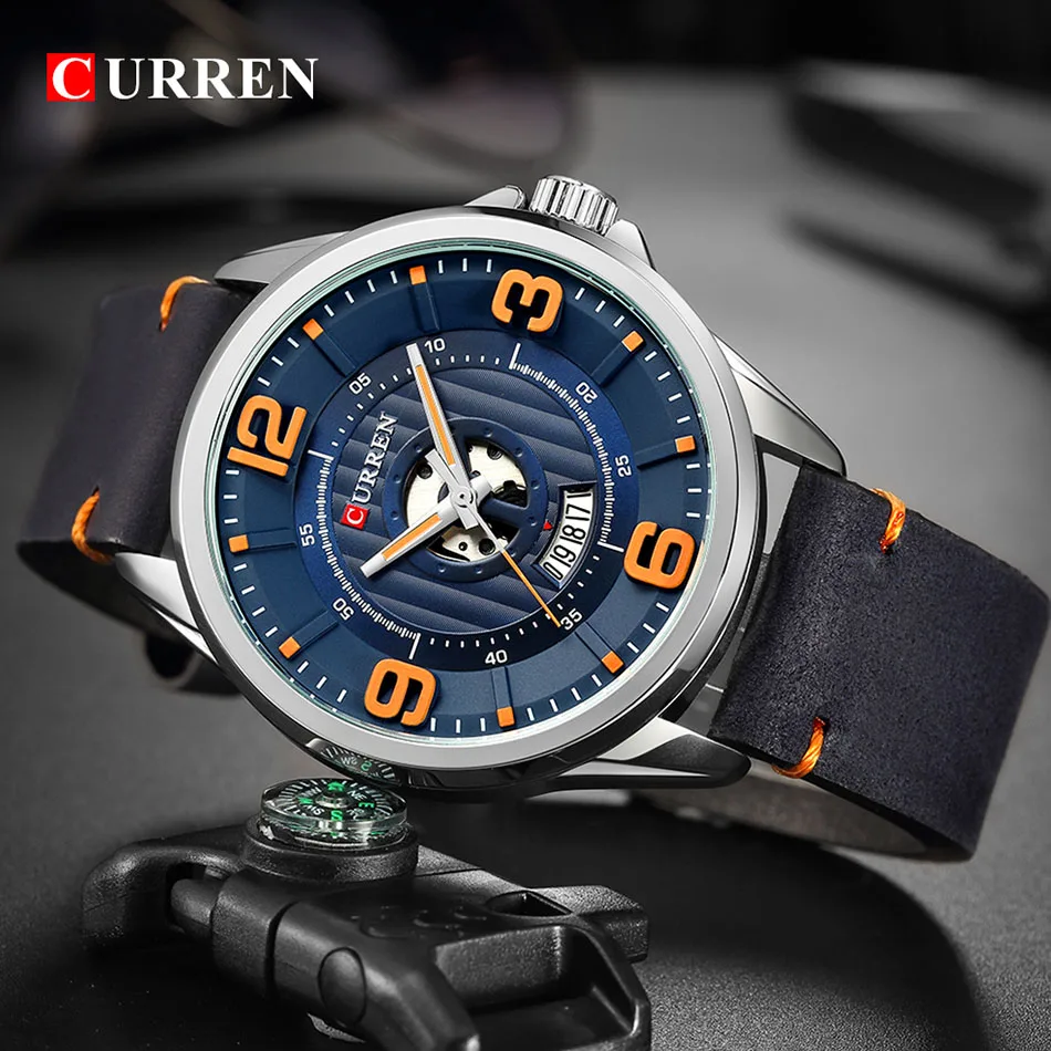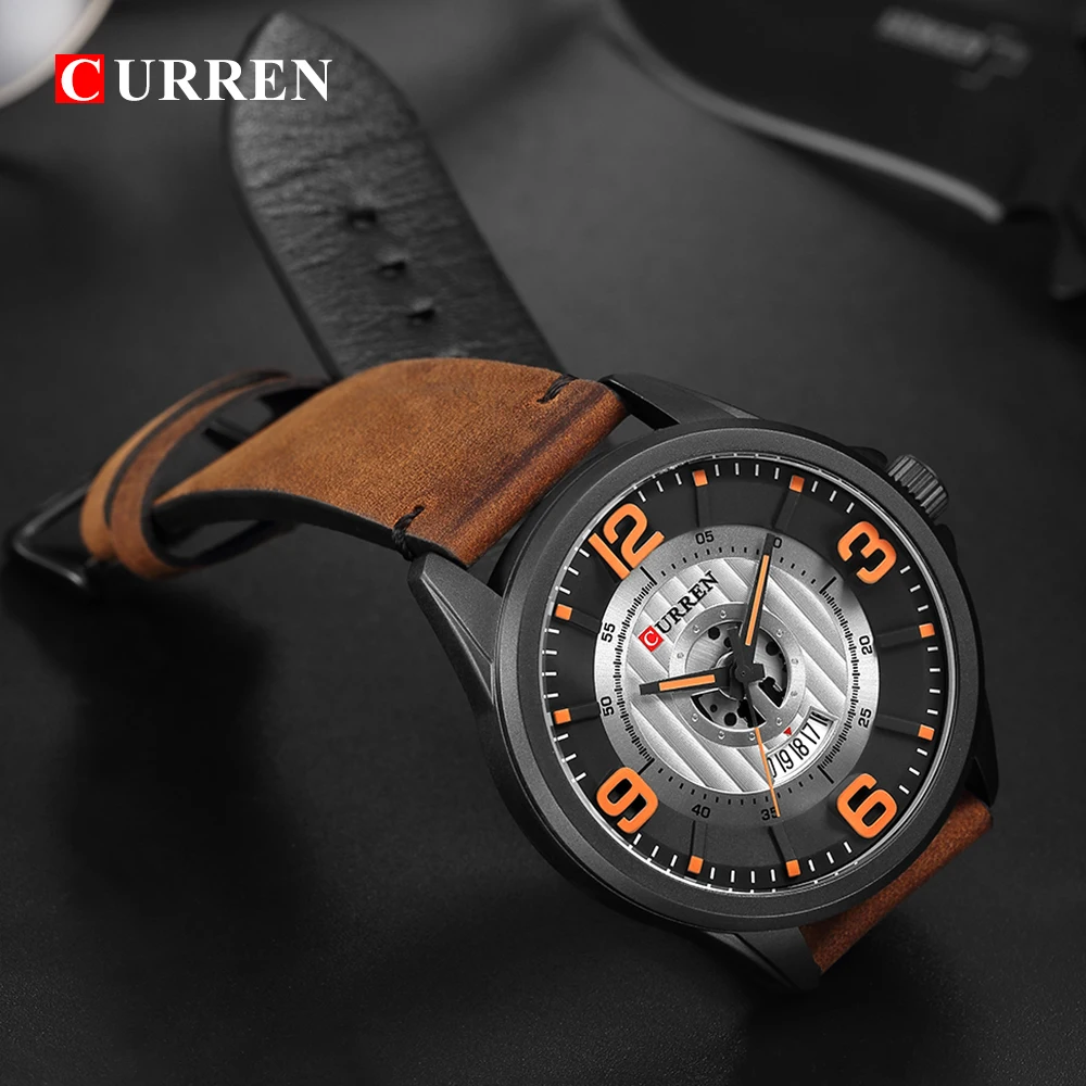 Часы наручные CURREN Мужские кварцевые, роскошные брендовые водонепроницаемые Модные в стиле милитари, деловой стиль с кожаным ремешком
