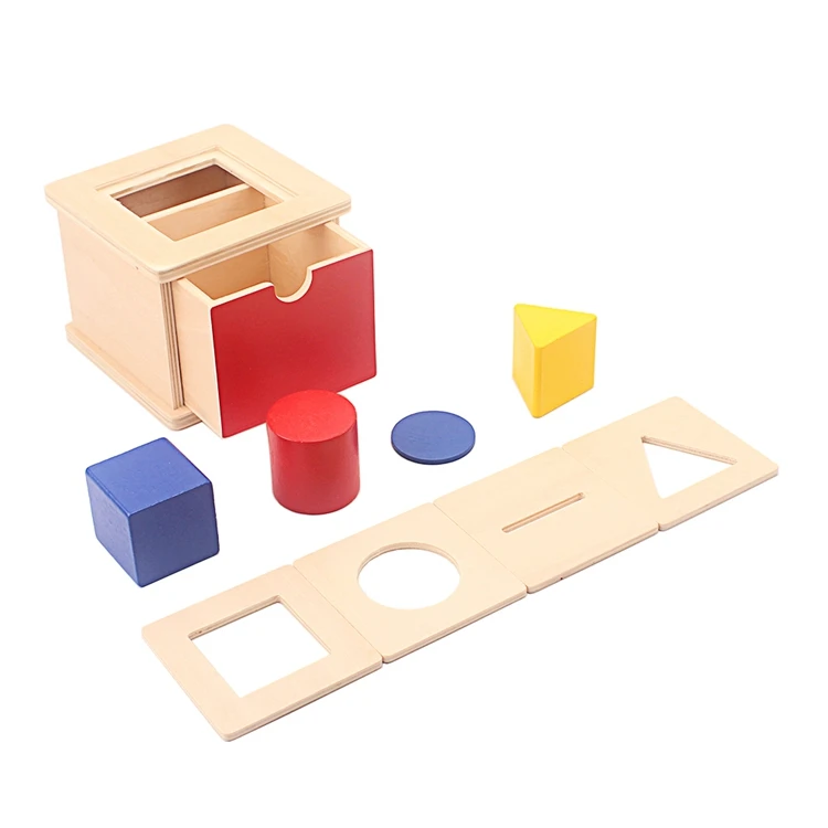 Коробка Монтессори Imbucare со сменными крышками, детские игрушки 4 в 1, деревянные геометрические фигуры, искусственная кожа, Игрушки для развития игры, подарок