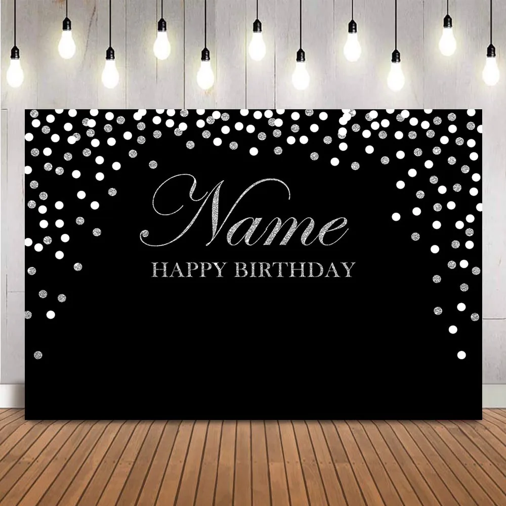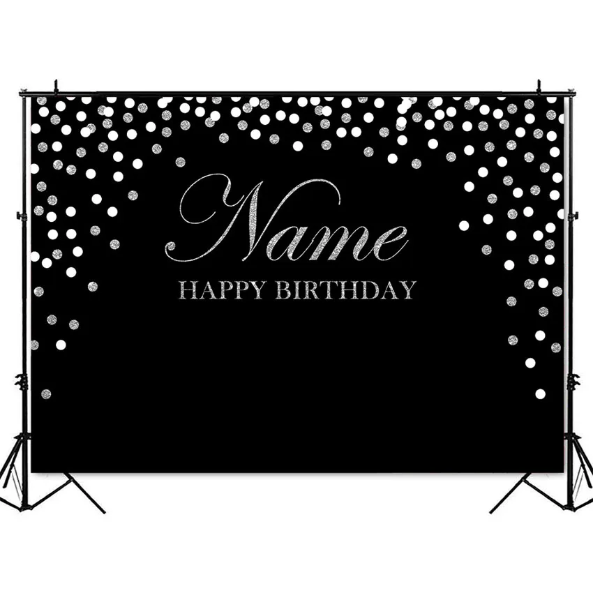 Черный фон для дня рождения Серебряный Блестящий Фон в горошек для ...
