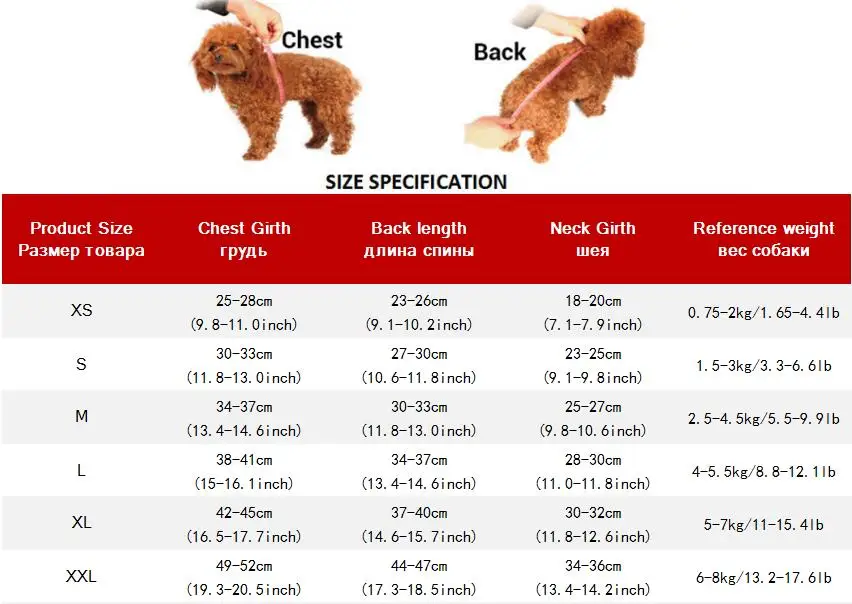 Заказывала на чихуахуа на вес 2 кг (5месяцев) размер XS сел идеально!
