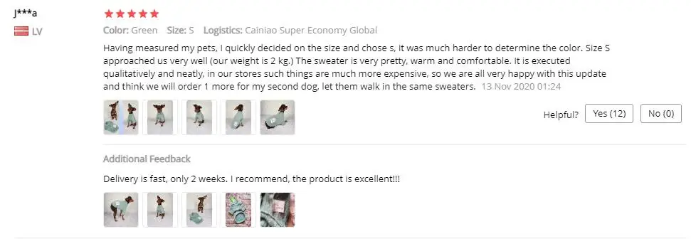 Получил товар в указанный продавцом срок, он такой же, как на фото, свитер для милой собаки