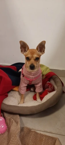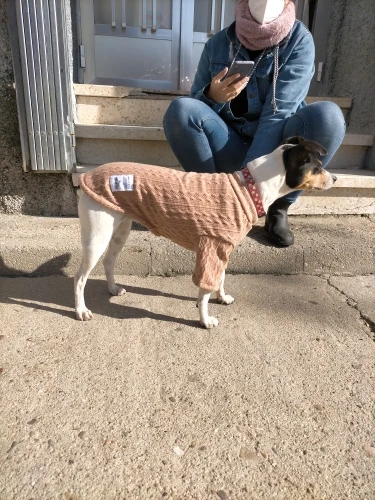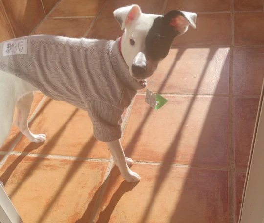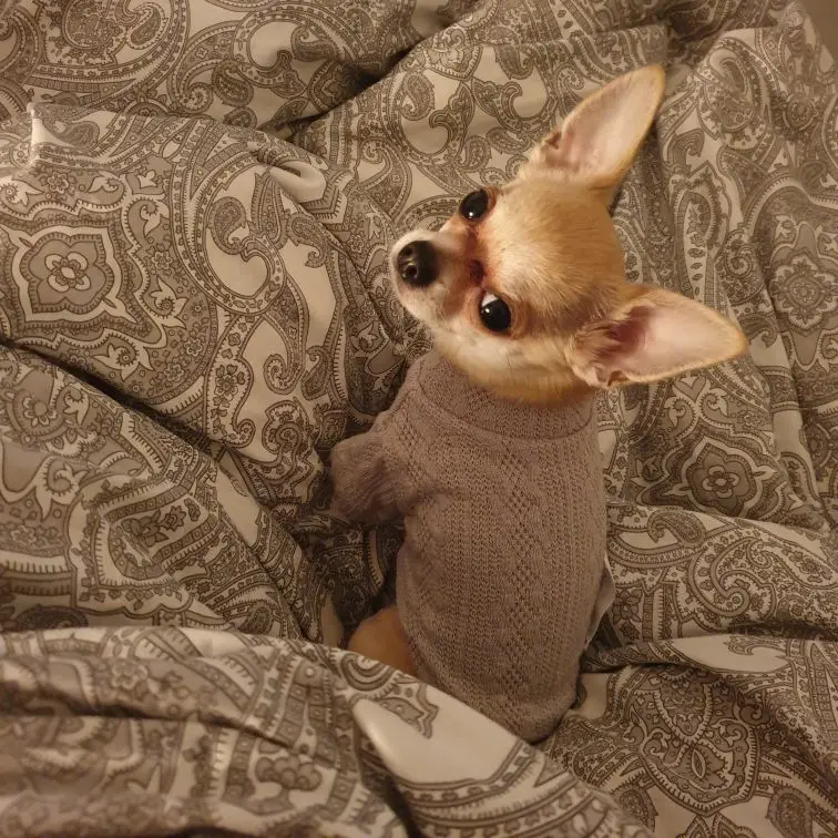 Muy bonito el jersey y de buena calidad. Para el chihuahua la talla S le va genial.