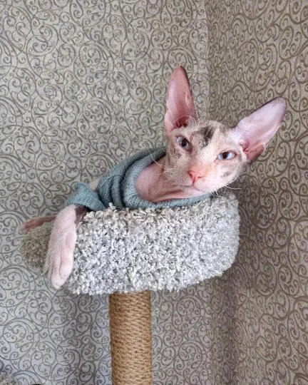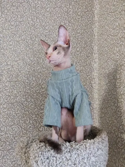 На кошку сфинкса 8 месяцев размер М село свободно, чуть подрастет и будет как раз, сейчас тоже отлично) Ткань не толстая, приятная, но торчат нитки, и кривые швы, но в целом всё отлично) Товар пришел очень быстро, если не ощибаюсь, за неделю, до Калининграда