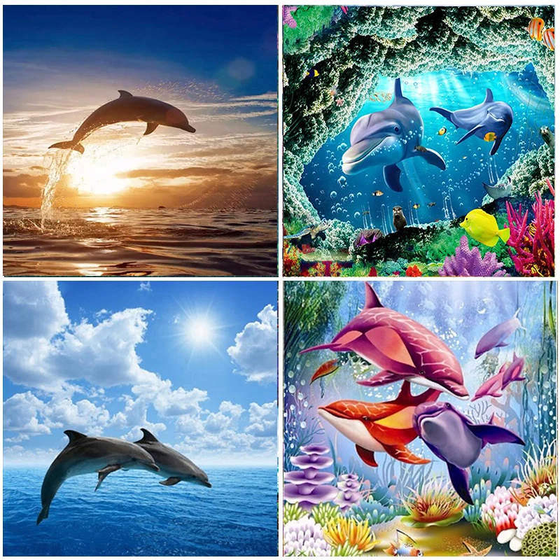 5D алмазная живопись дельфин домашний декор вышивка Полный Круглый дрель дисплей с животными из стразов полный квадратный стежок Фэнтези мультфильм