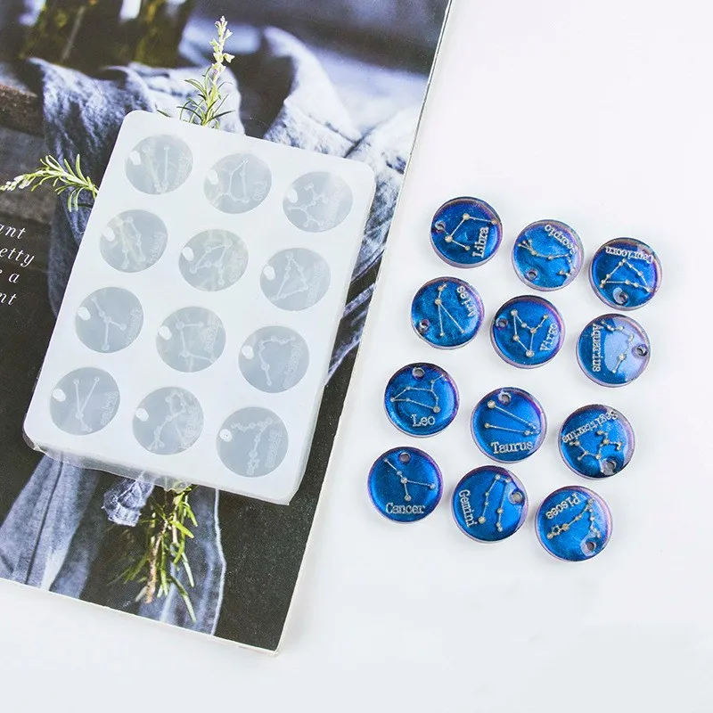 Брелок кулон двенадцать созвездий силиконовая форма для эпоксидной смолы литье креативные серьги ювелирные изделия Подвески Изготовление форм