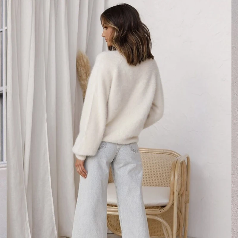 Кардиган женский из мохера, с V-образным вырезом и рукавами-фонариками, Осень-зима 2020