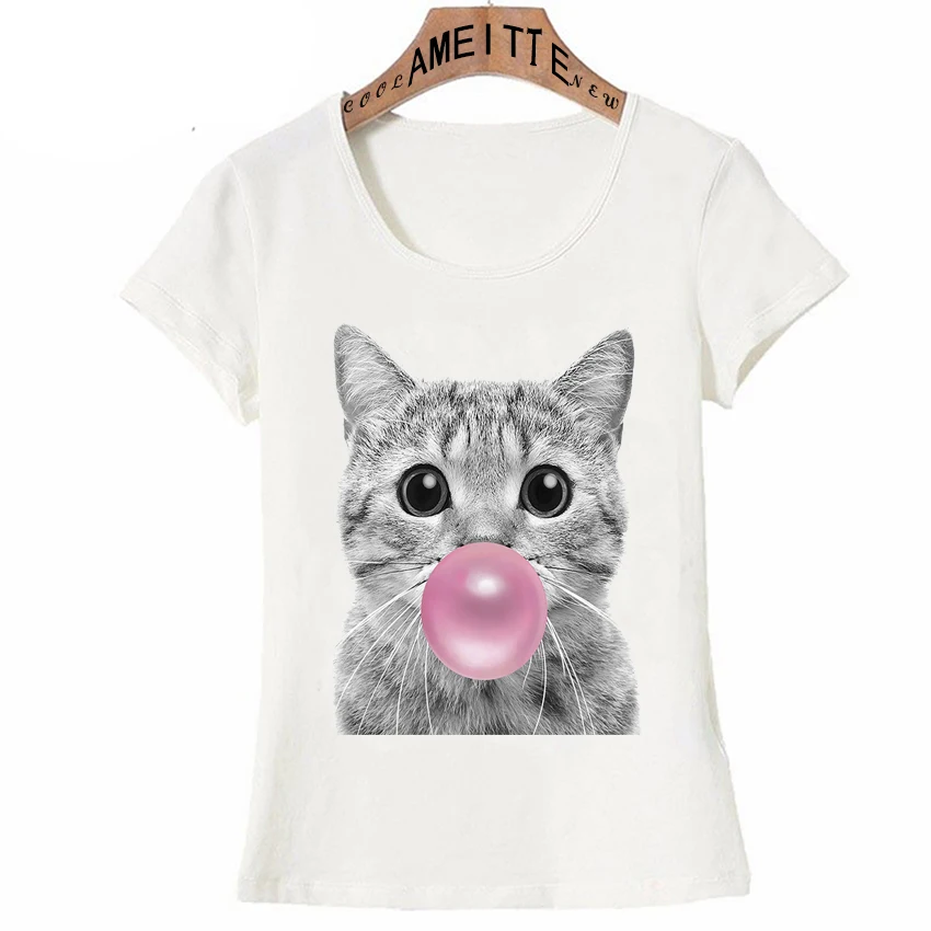 Новая летняя модная женская футболка с коротким рукавом и изображением непослушной милой кошки с рисунком жвачки, Дизайнерские повседневные топы с котятами, футболки для девочек